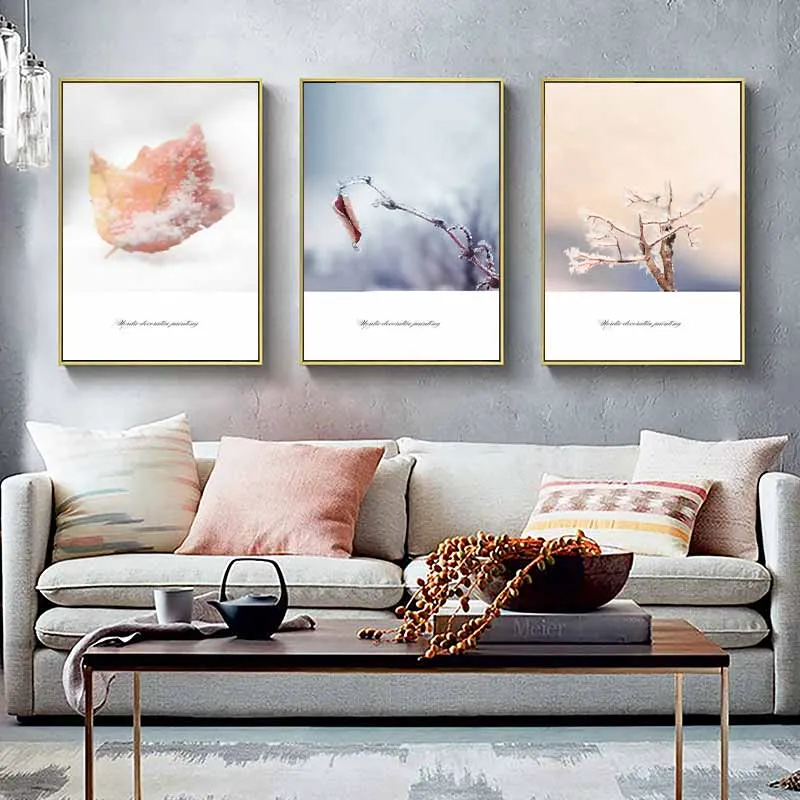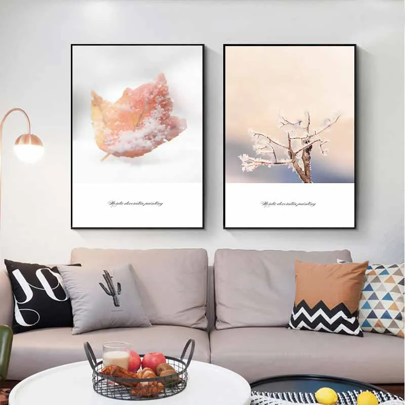 Tranh những chiếc lá phủ đầy tuyết mùa đông