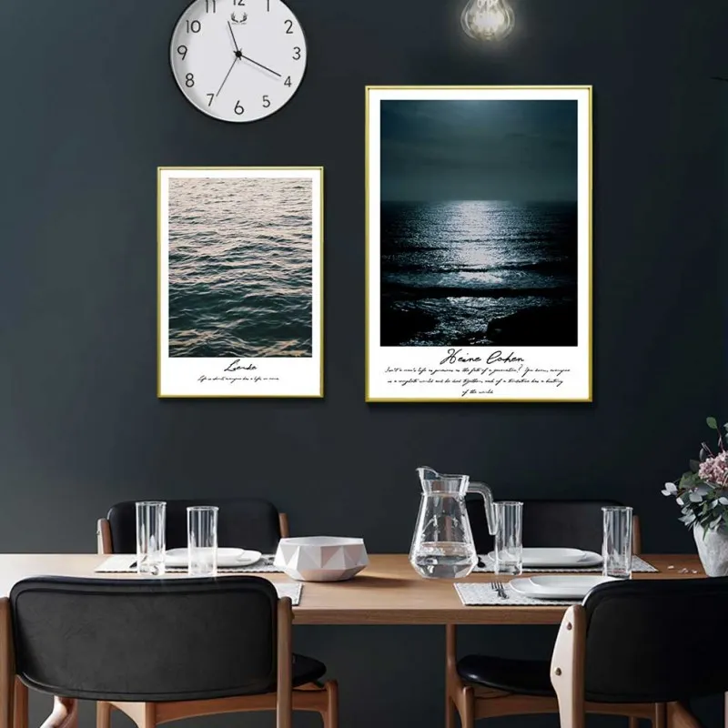 Tranh in canvas phong cảnh mặt biển và những con sóng kết hợp chữ
