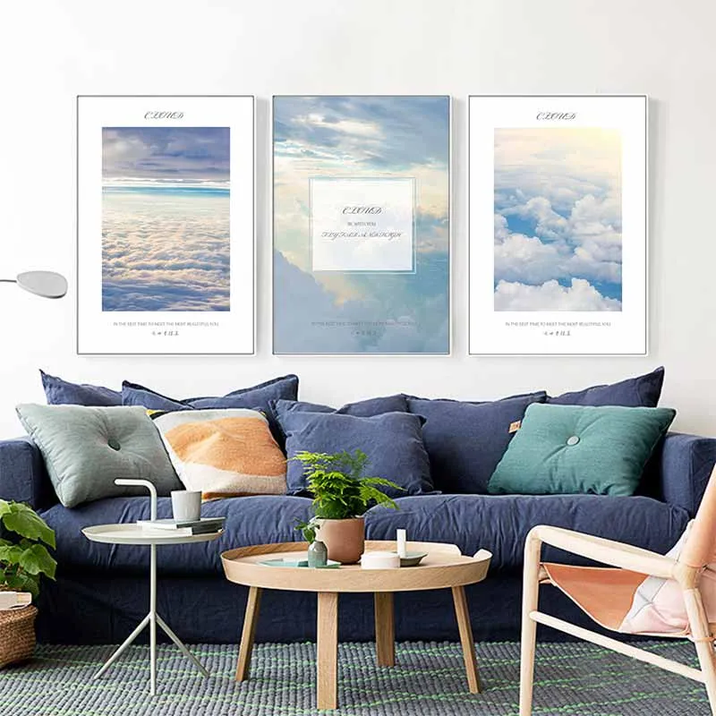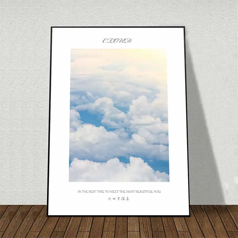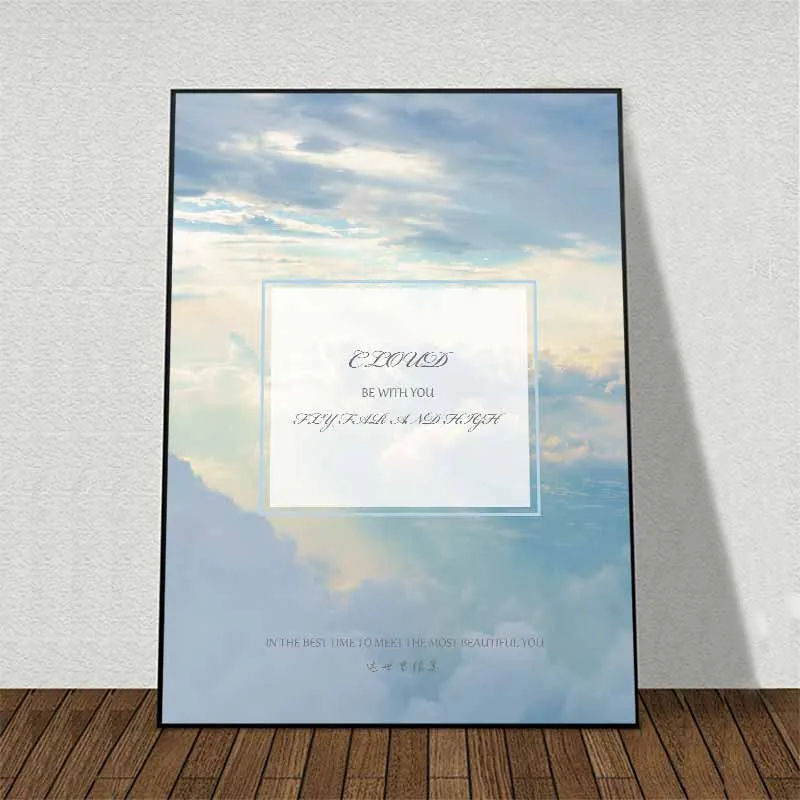 Tranh phong cảnh biển kết hợp chữ Cloud be with you fly far and high