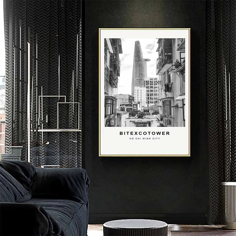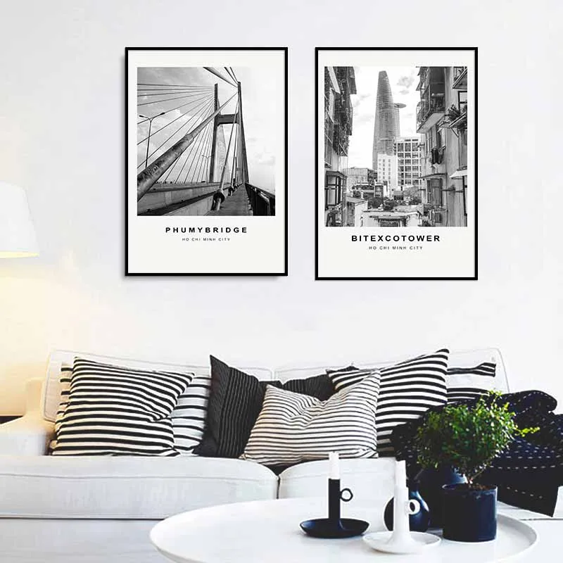 Tranh phong cảnh Sài Gòn cầu Phú Mỹ và tòa nhà Bitexco