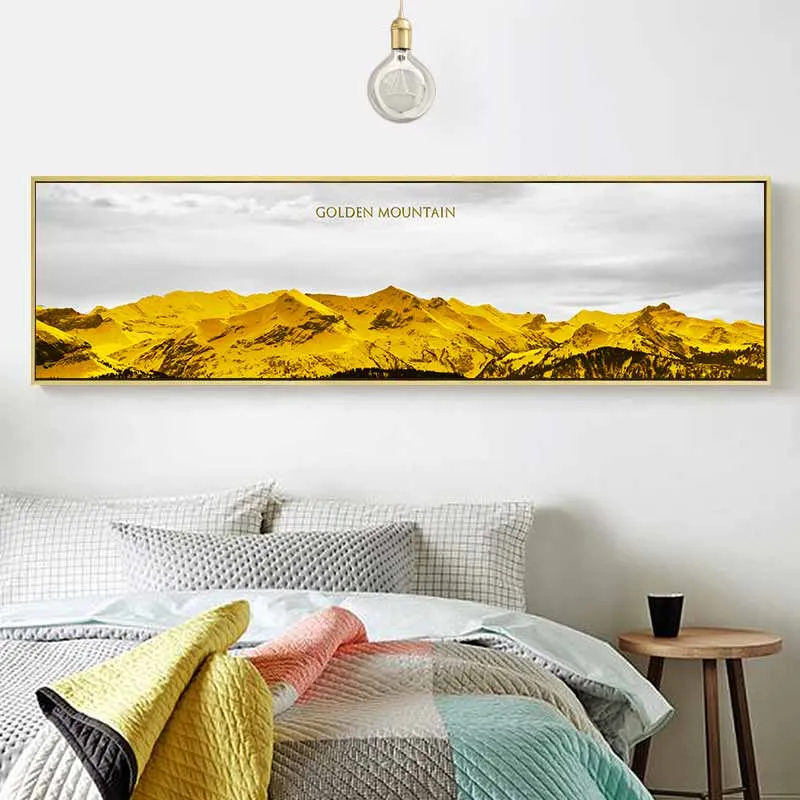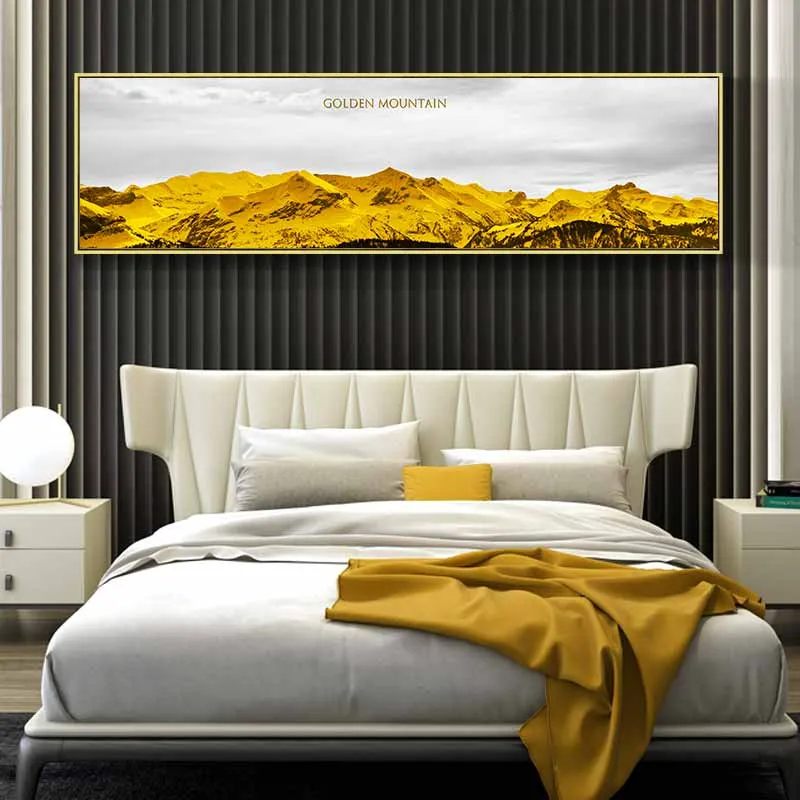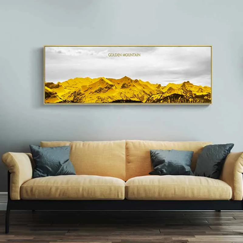 Tranh phong cảnh đồi núi vàng kết hợp chữ Golden Mountain