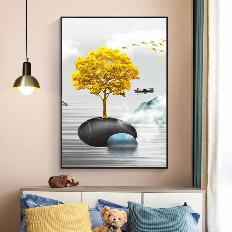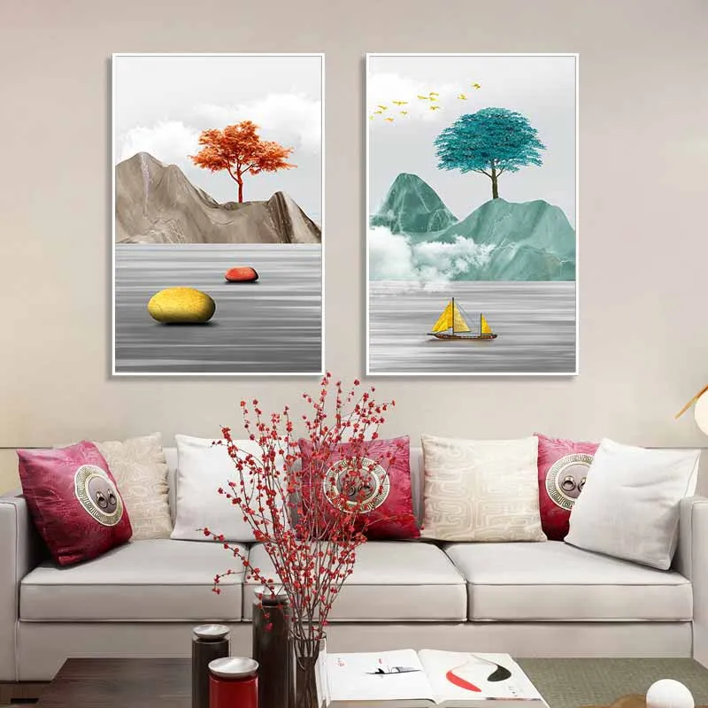 Tranh phong cảnh dòng sông trừu tượng hiện đại