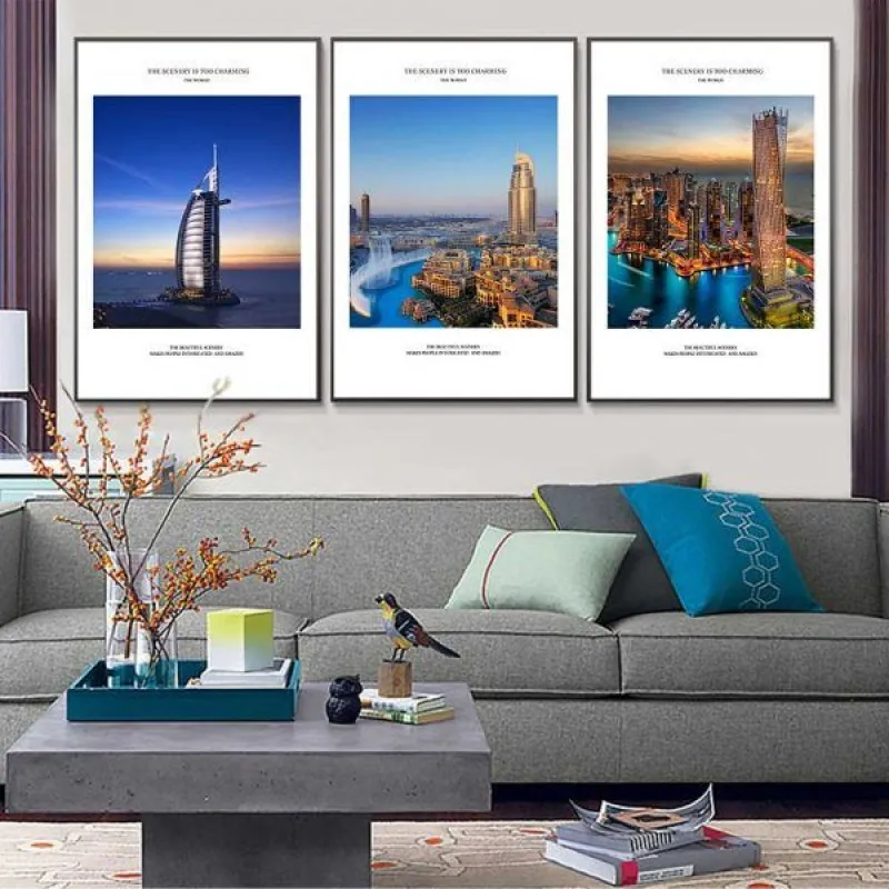 Bộ tranh phù hợp treo phòng khách hoặc phòng ngủ.