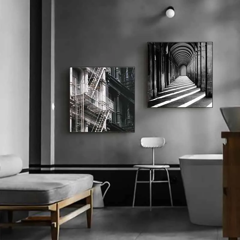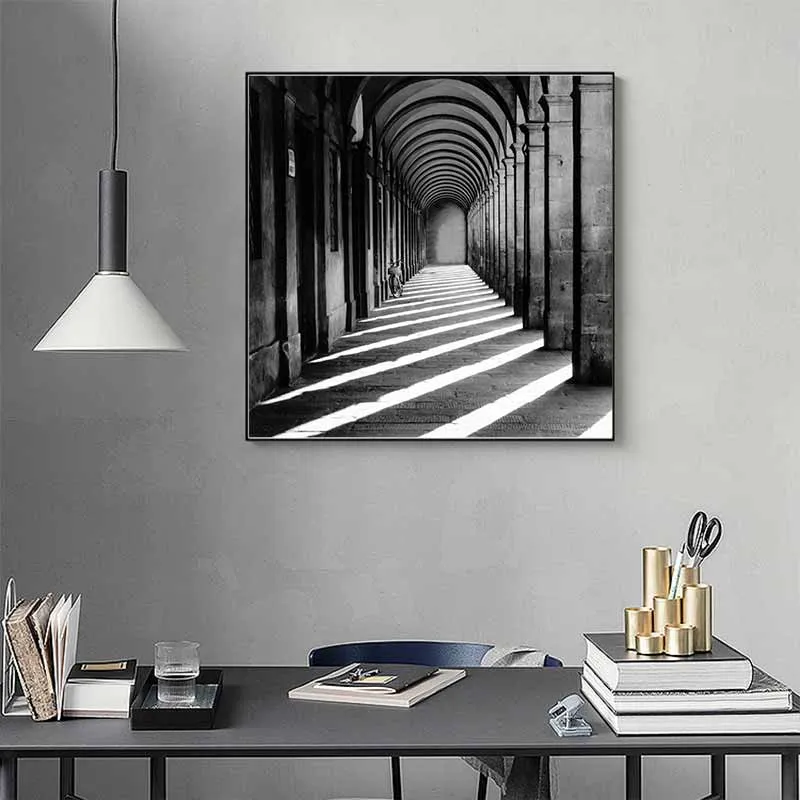 Tranh phong cảnh kiến trúc trắng đen