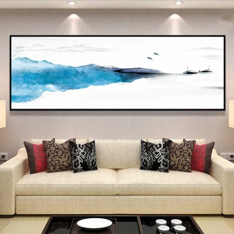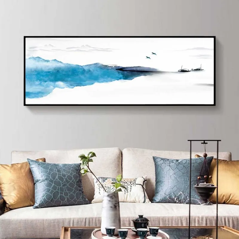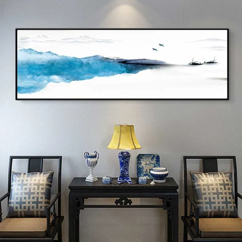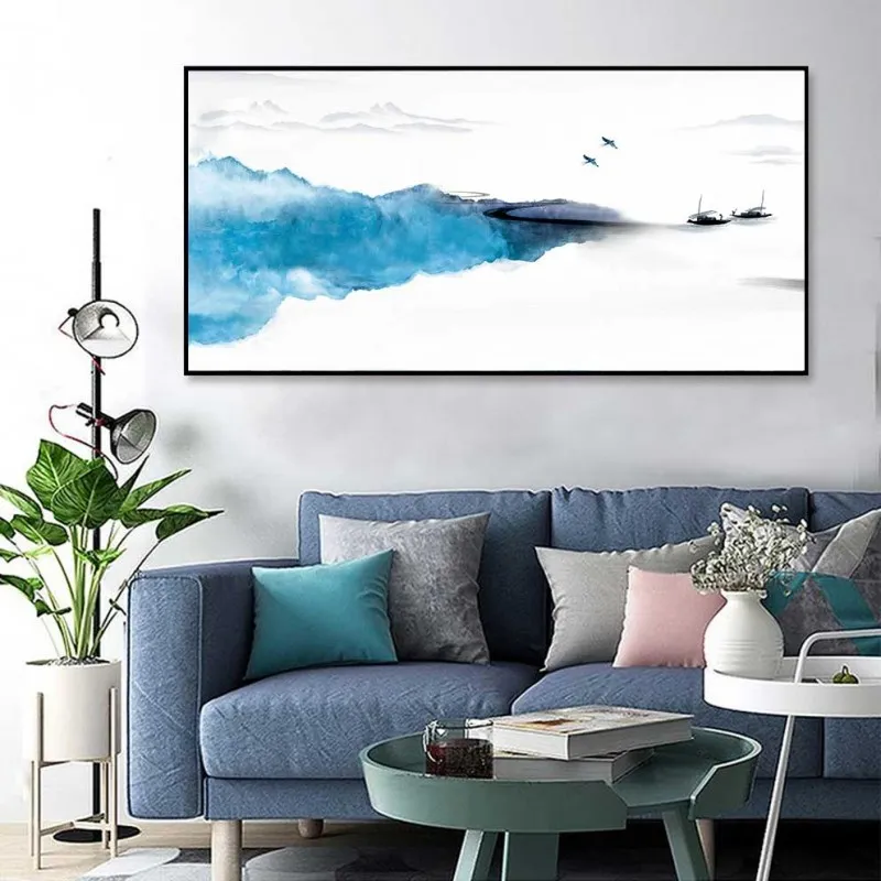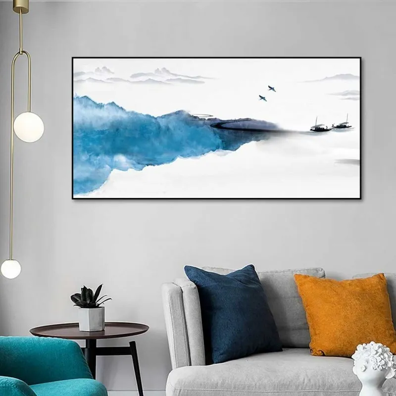 Tranh in canvas phong cảnh dòng sông với những con thuyền nhỏ, mặt sông như gương soi hình ảnh bóng cây xuống mặt nước với thiết kế màu sắc đặc biệt, cây có màu xanh biển nổi bật thích hợp treo ở phòng khách, phòng làm việc, đặc biệt là phòng ngủ…