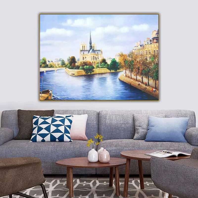 Tranh phong cảnh nhà thờ Đức Bà, Pháp, bản in từ sơn dầu