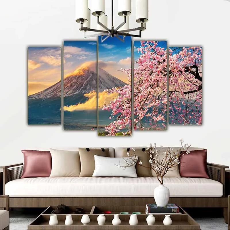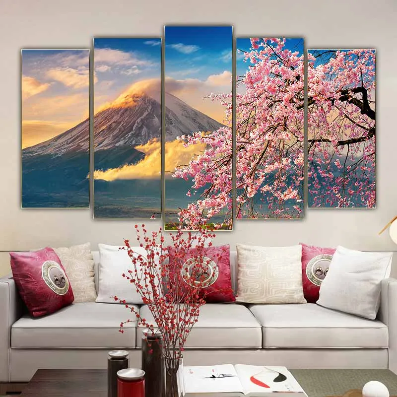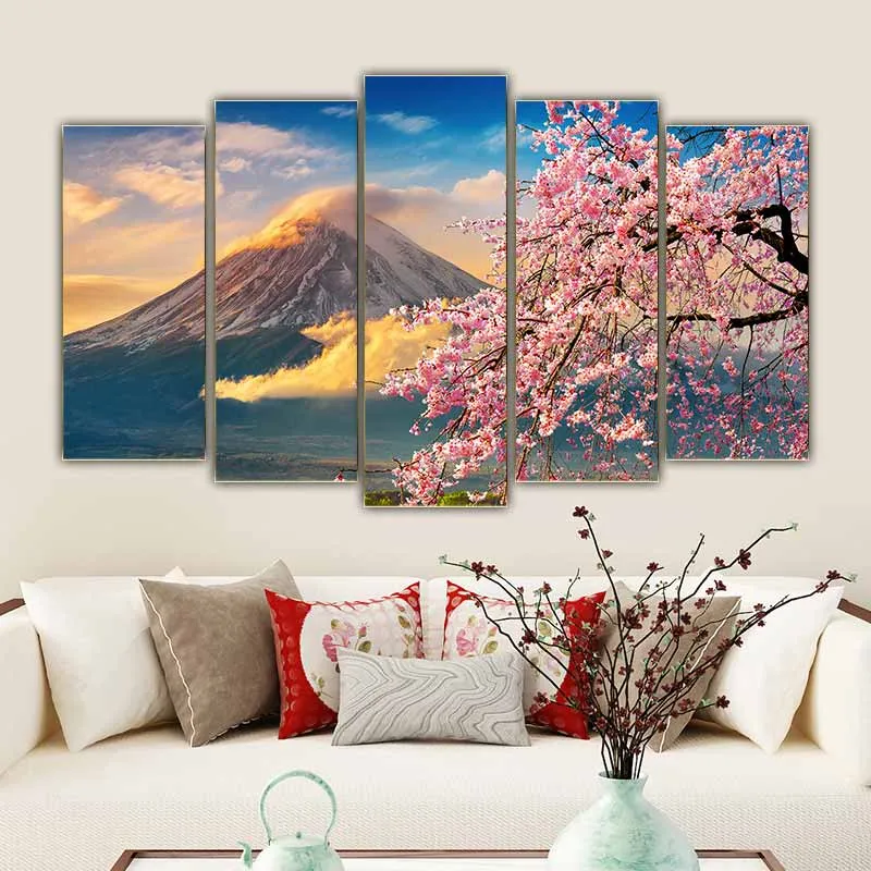 Tranh phong cảnh núi Phú Sĩ và cây hoa Anh đào