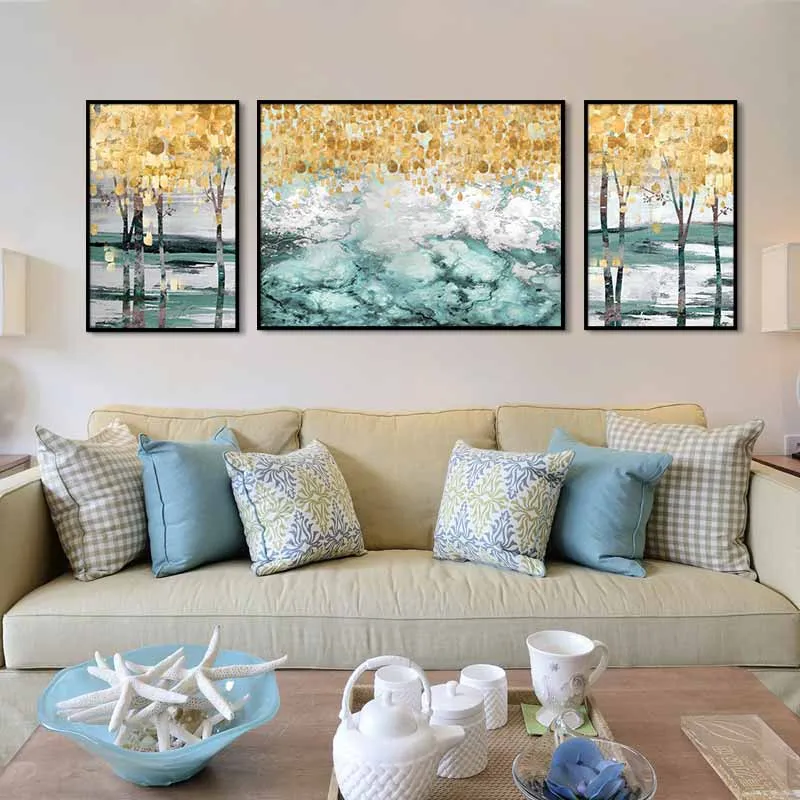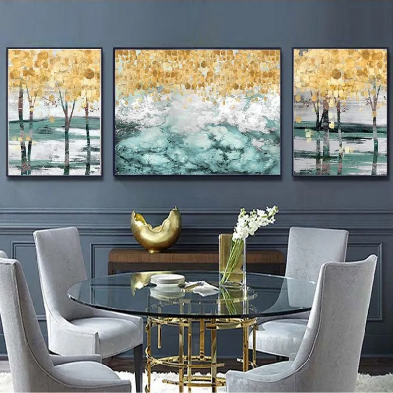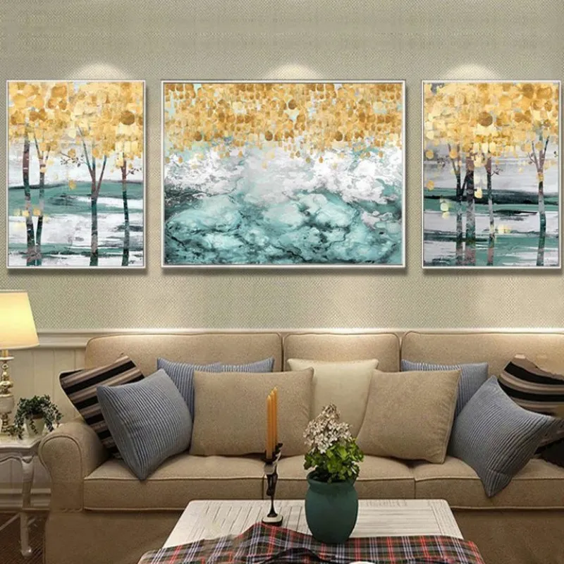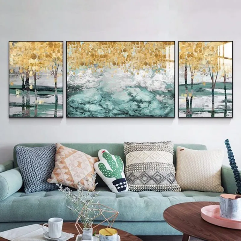 Tranh in canvas phong cảnh rừng cây lá vàng trừu tượng.