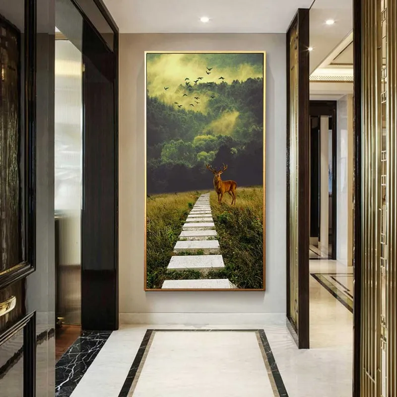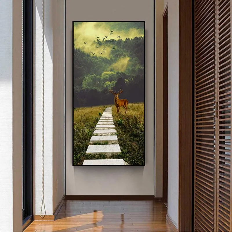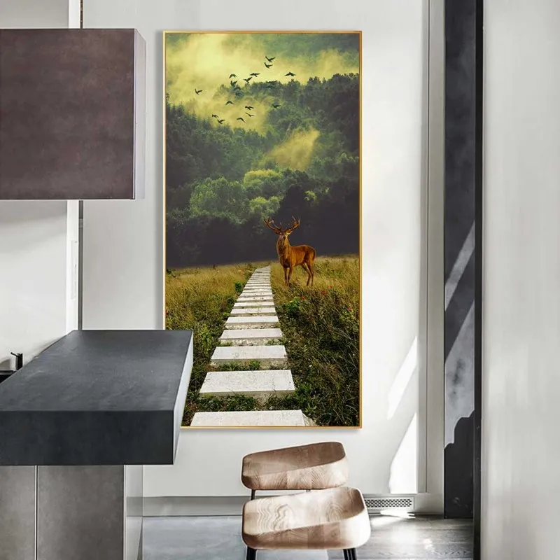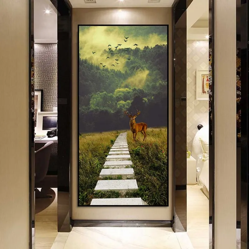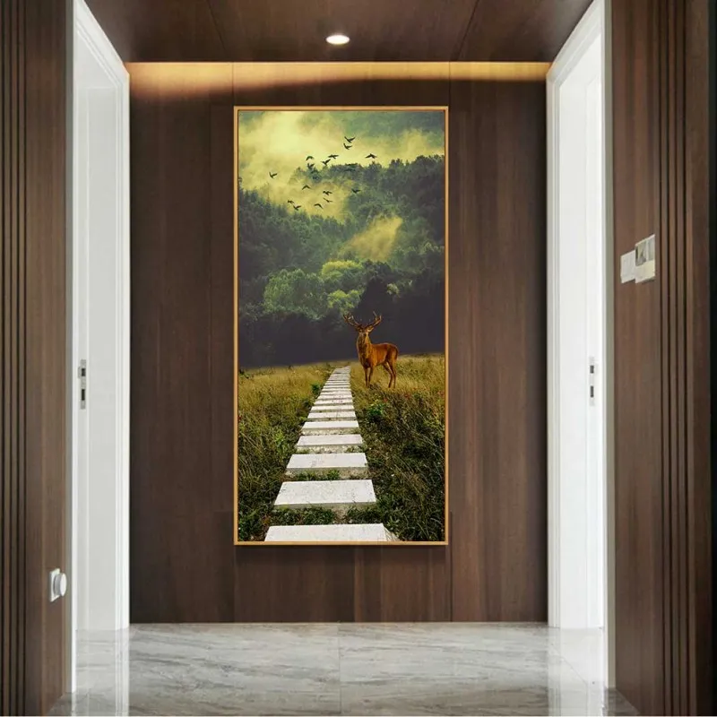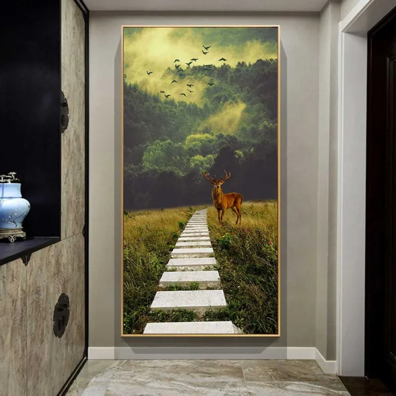 Tranh phong cảnh rừng và nai