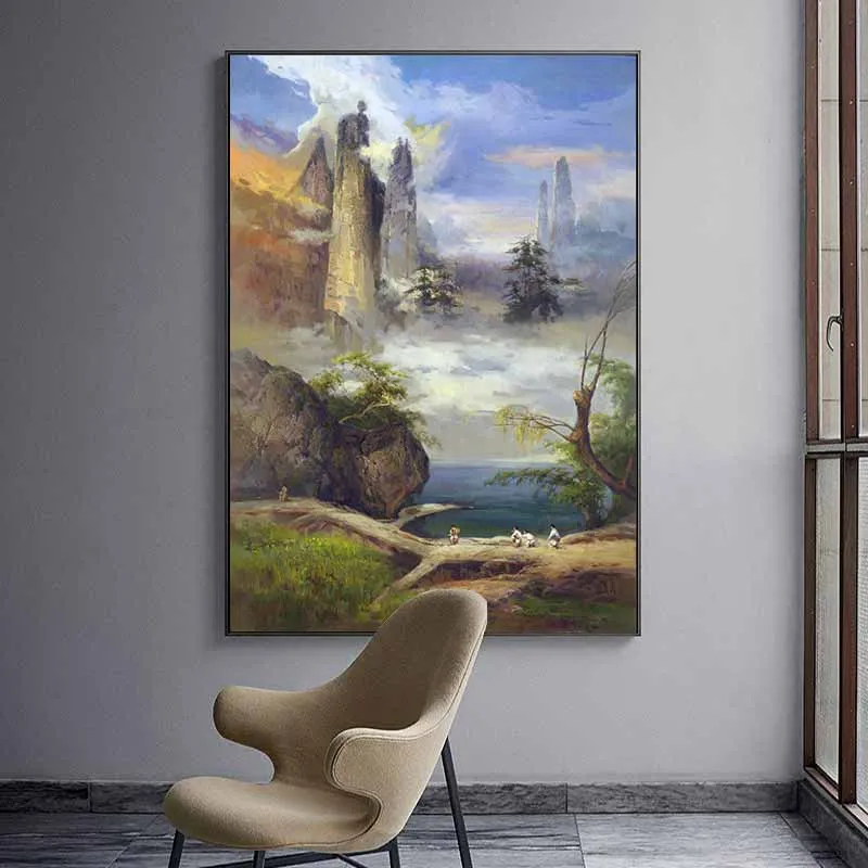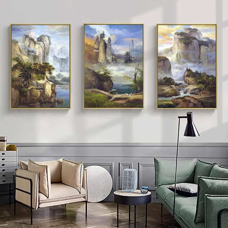 Tranh phong cảnh sơn thủy đồi núi và con suối của họa sĩ Cui Ji