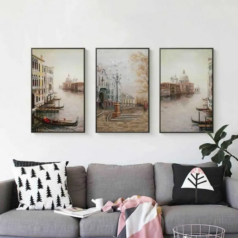 Tranh phong cảnh thành phố trên sông