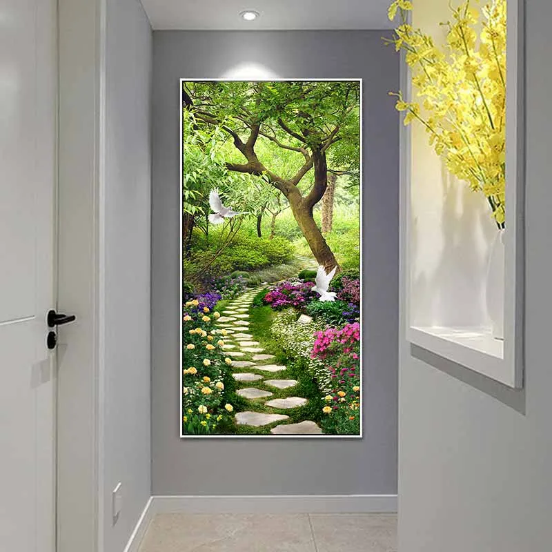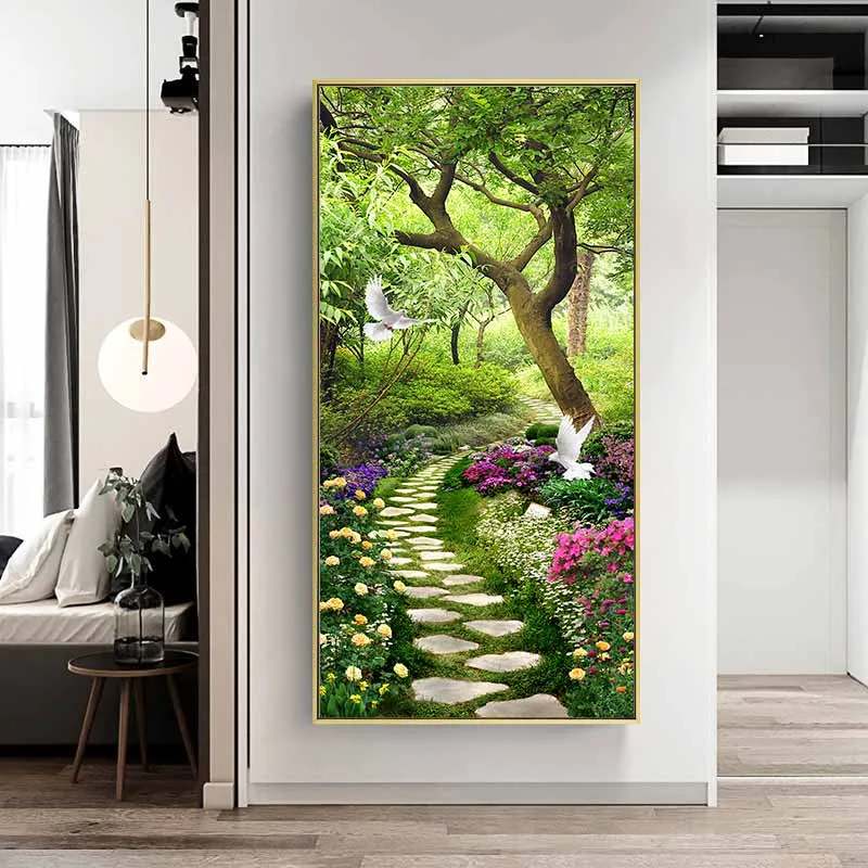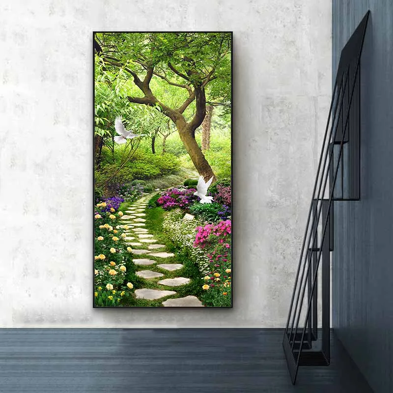 Tranh phong cảnh vườn công viên và đôi chim bồ câu
