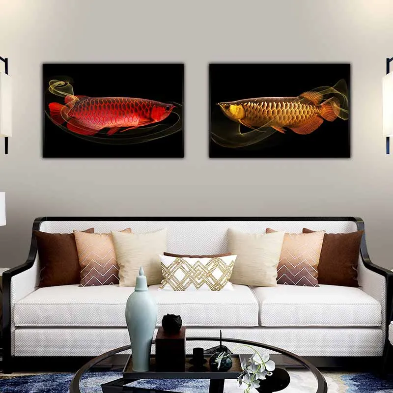Tranh Phong thủy cá rồng Huyết Long và kim long