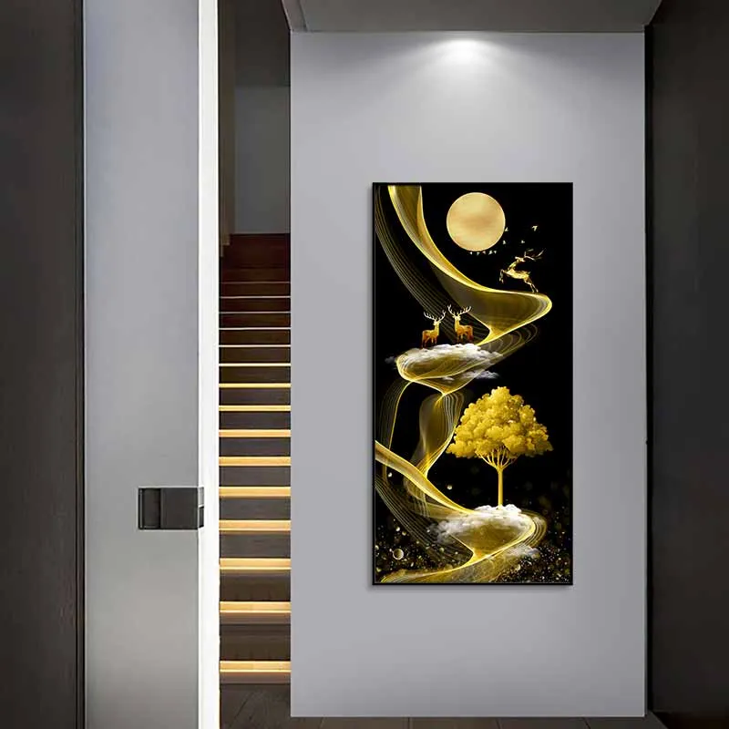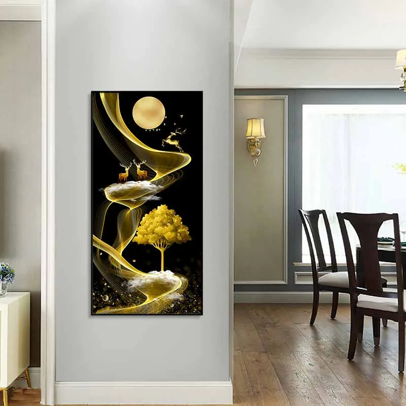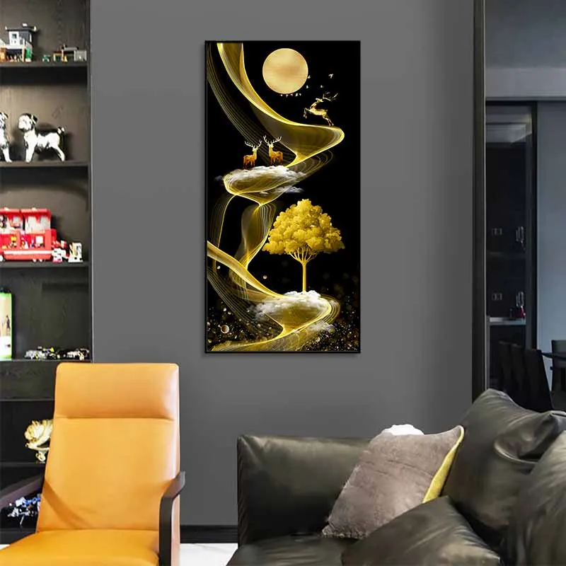 Tranh phong thủy đàn nai chạy nhảy trên dãy núi trừu tượng