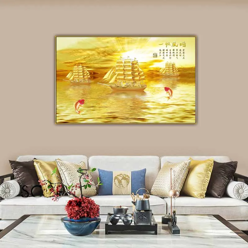 Tranh phong thủy thuận buồm xuôi gió, tranh thuyền buồm vàng