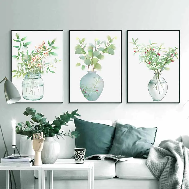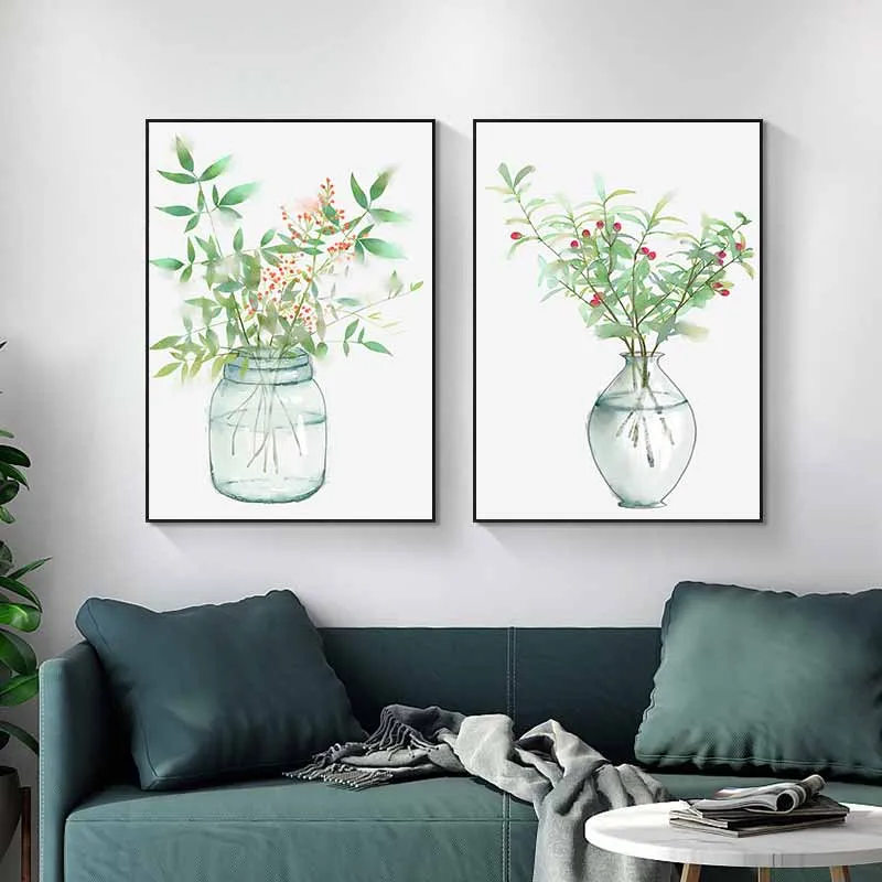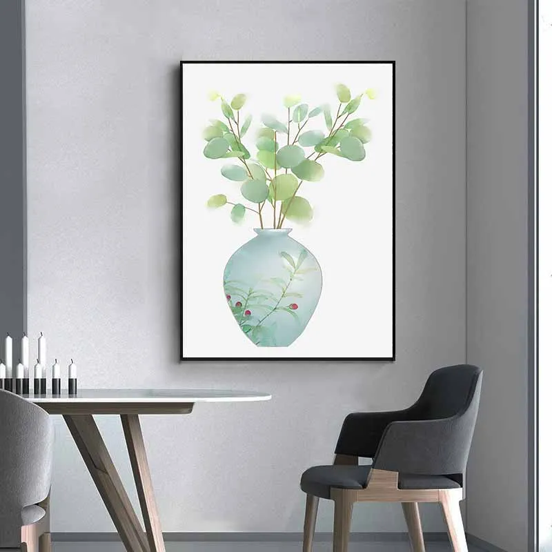 Tranh scandinavia tĩnh vật bình hoa và lá