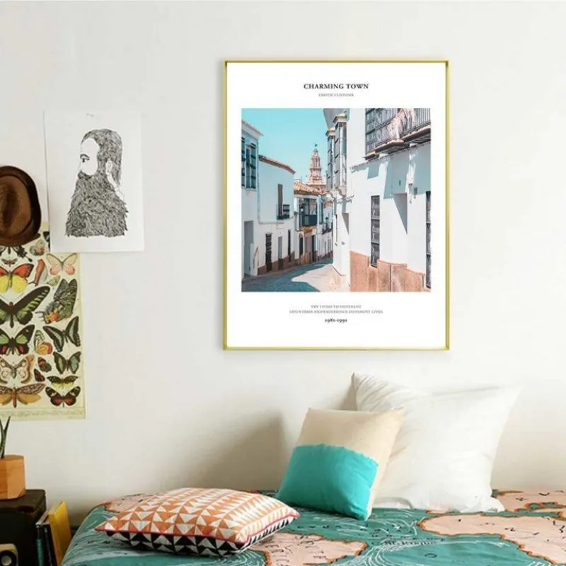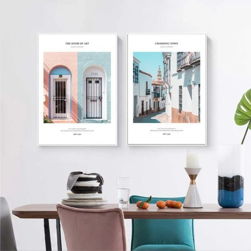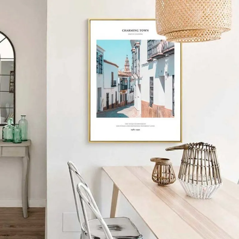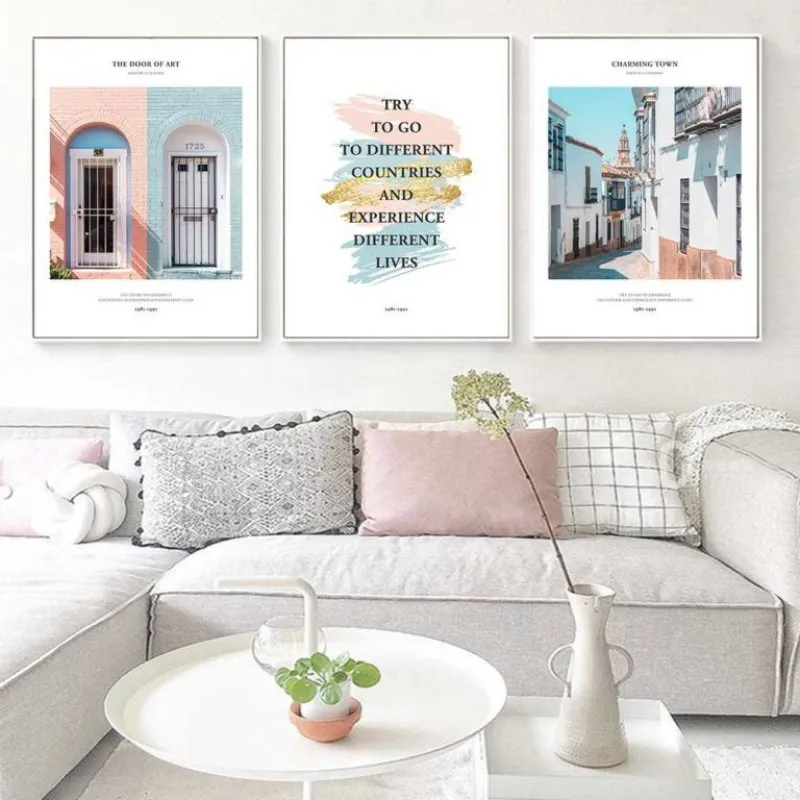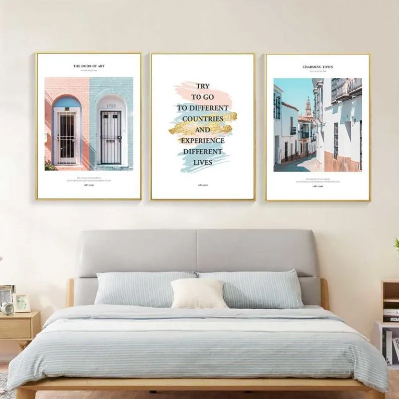 Tranh in canvas phong cảnh thành phố cửa nhà, con phố đầy màu sắc kết hợp chữ Try to go to different countries and experience different lives. Tranh thích hợp treo ở phòng khách, phòng làm việc, phòng ngủ, quán cà phê, nhà hàng, khách sạn, chân cầu thang, bàn học, bàn làm việc…