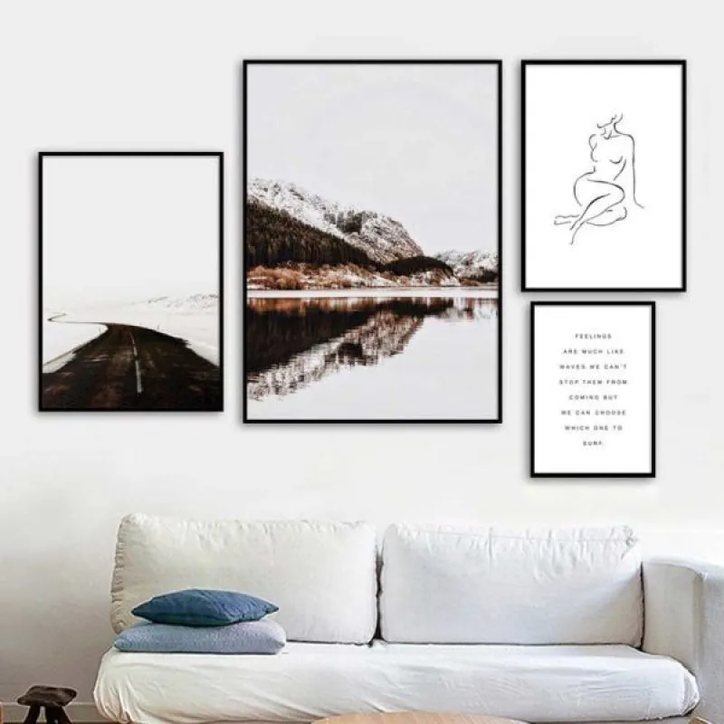 Tranh in canvas hình dáng cô gái được vẽ theo kiểu đường nét, con đường uốn quanh, đồi núi, mặt hồ tĩnh lặng, với thể loại Scandinavian làm cho bức tranh đơn giản mà hấp dẫn. Tranh kết hợp chữ Eat diamonds for breakfast and shine all day, thích hợp treo ở phòng khách, phòng làm việc, nhà hàng quán cà phê, bàn học, bàn làm việc…
