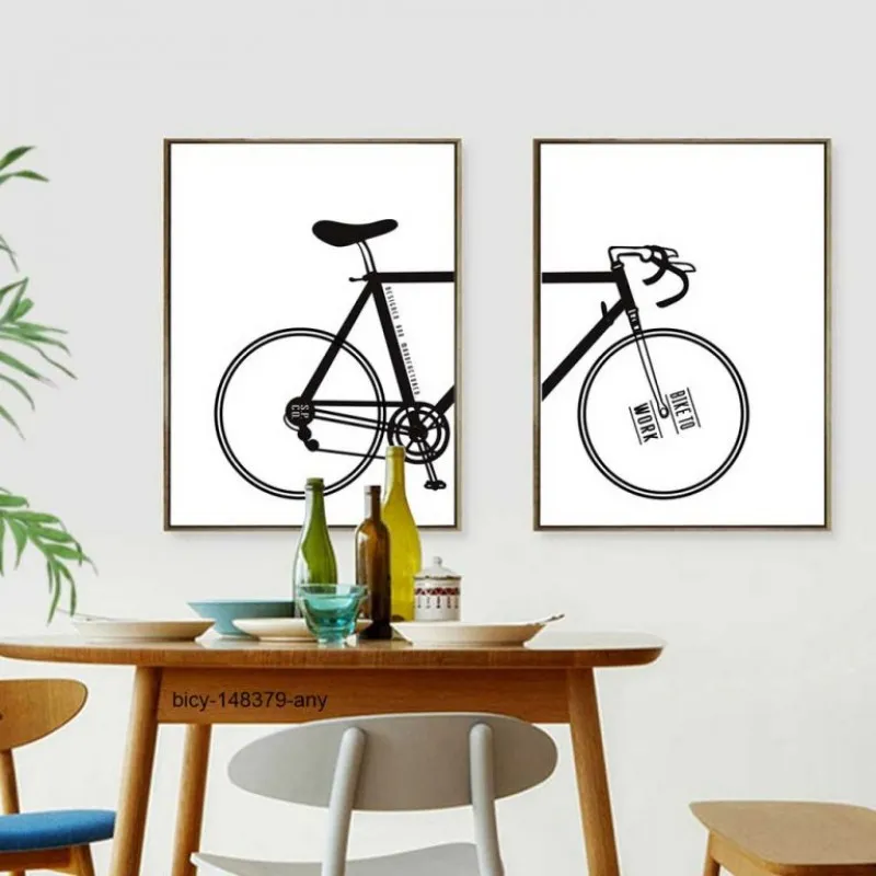 Tranh canvas Bắc Âu Scandinavian xe đạp màu đen, chiếc xe cao và có thiết kế đơn giản kết hợp chữ Bike to work.