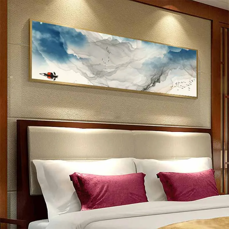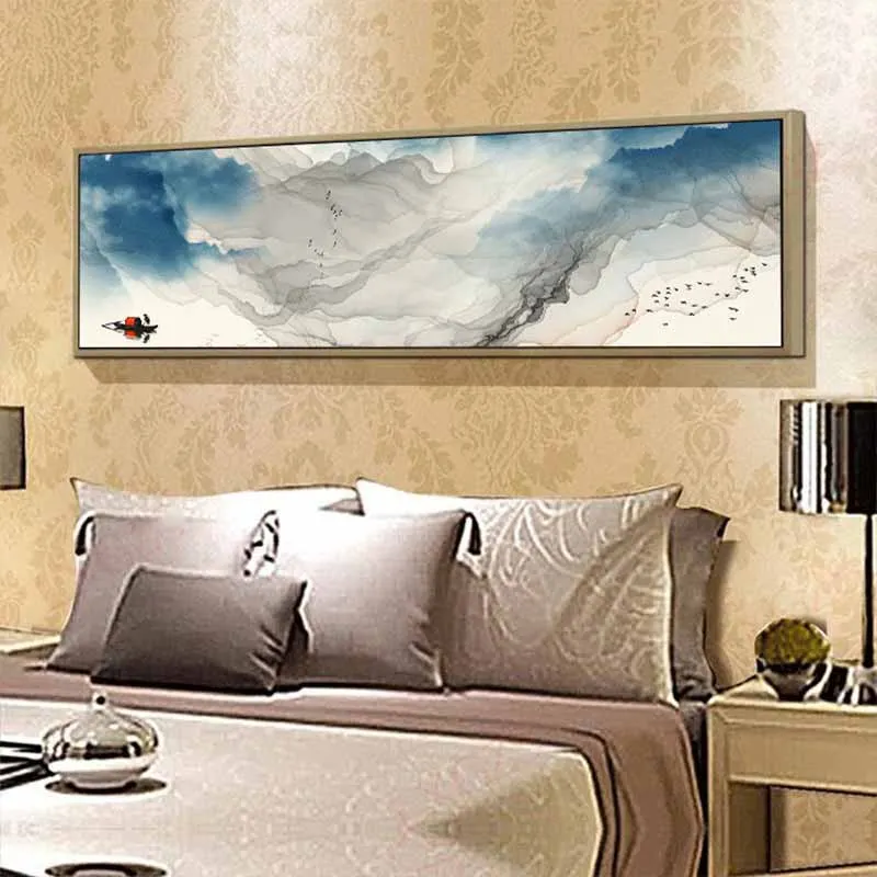 Tranh sơn thủy con thuyền trên dòng sông trừu tượng