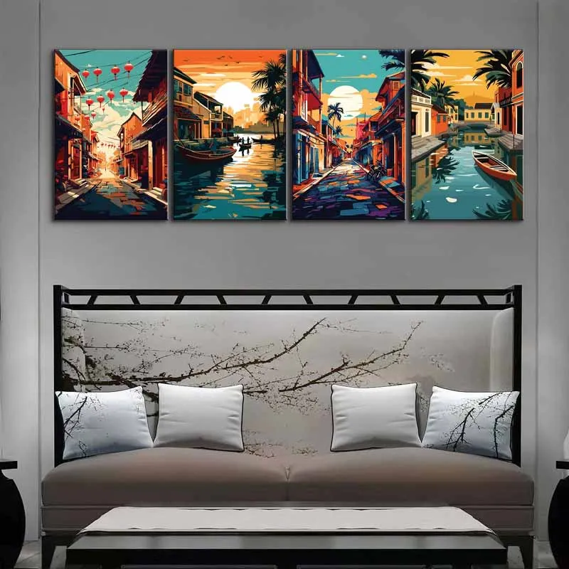 Bức tranh "Lantern": Đây là một biểu tượng của Việt Nam, được cho là có khả năng mang lại ánh sáng và hy vọng cho cuộc sống. Bức tranh này sử dụng các màu sắc ấm áp và lãng mạn như đỏ, vàng và tím để tạo ra một không gian ấm cúng và lôi cuốn. Bạn có thể treo bức tranh này ở phòng khách hoặc phòng ngủ để mang lại cảm giác ấm áp và lãng mạn.