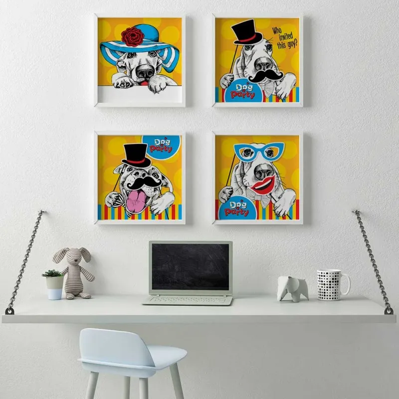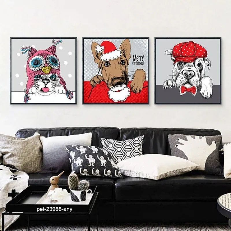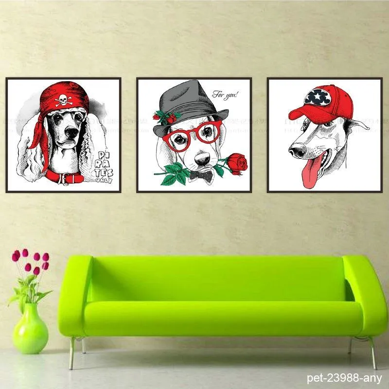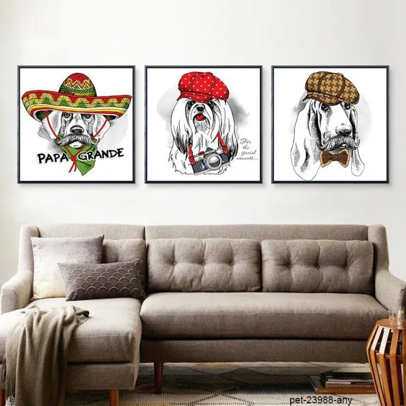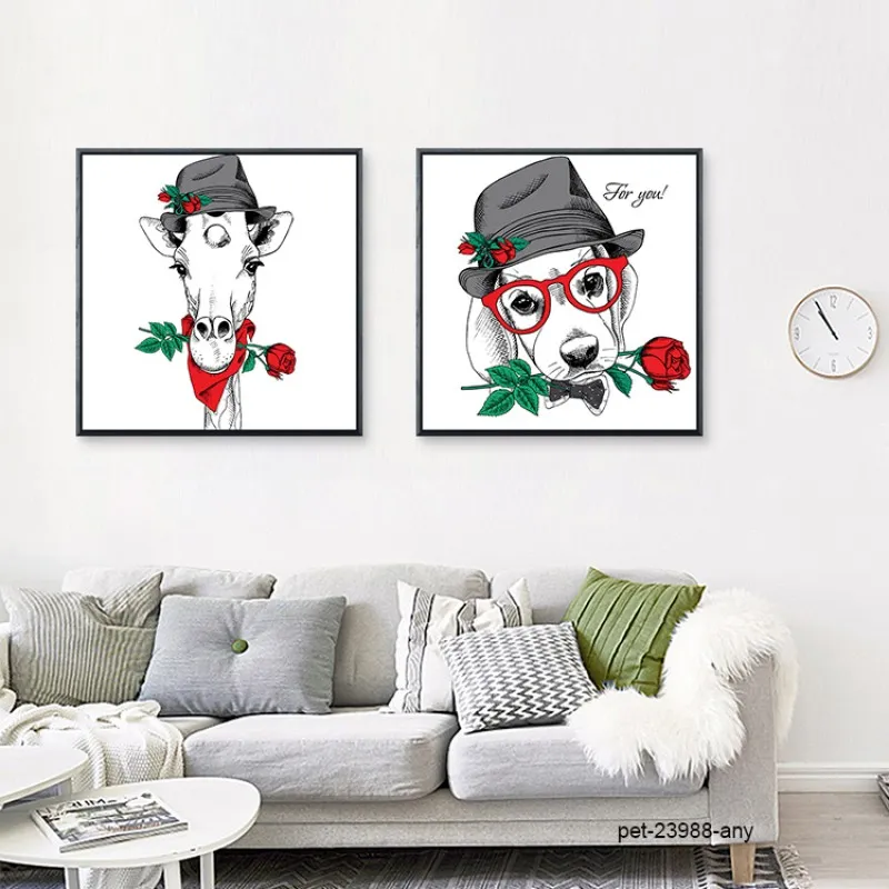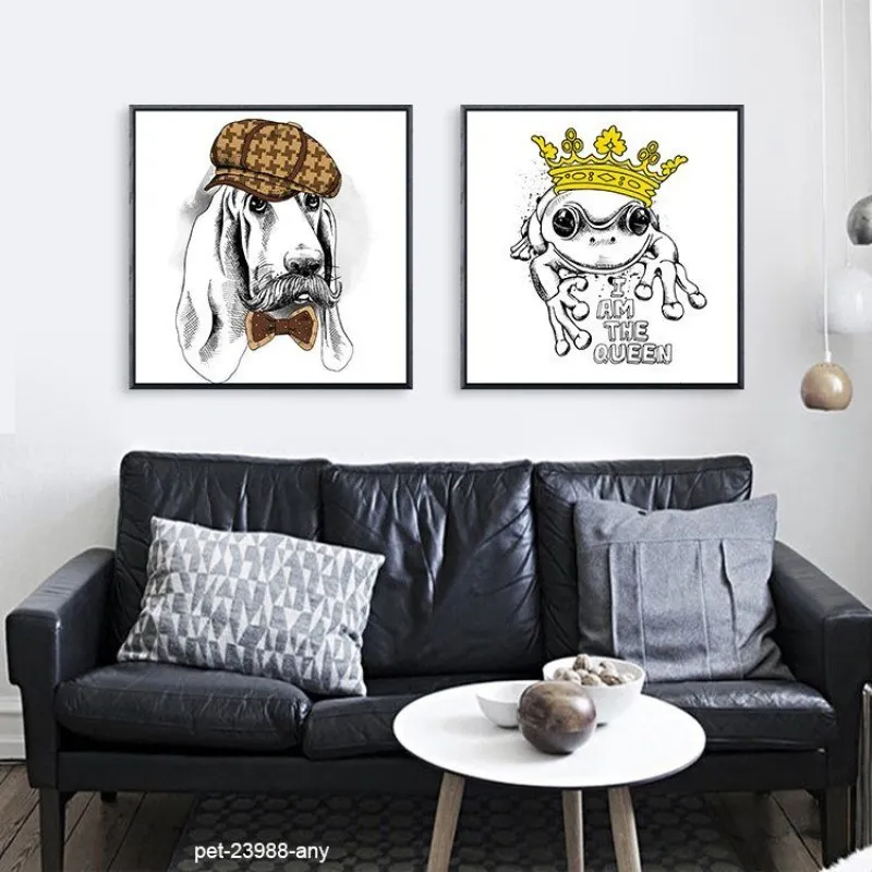 Tranh in canvas thời trang nón mũ của thú cưng chó, mèo, cú mèo, khỉ, nai, ếch, hươu cao cổ.