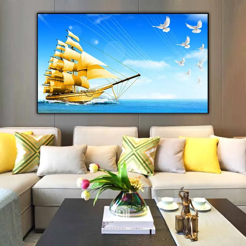 Tranh thuận buồm xuôi gió, tranh thuyền buồm vàng và đan chim bồ câu
