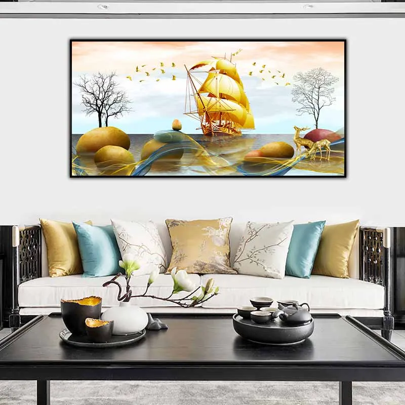 - Tranh được in trên chất liệu vải Canvas, sử dụng công nghệ UV và mực UV nhập khẩu.