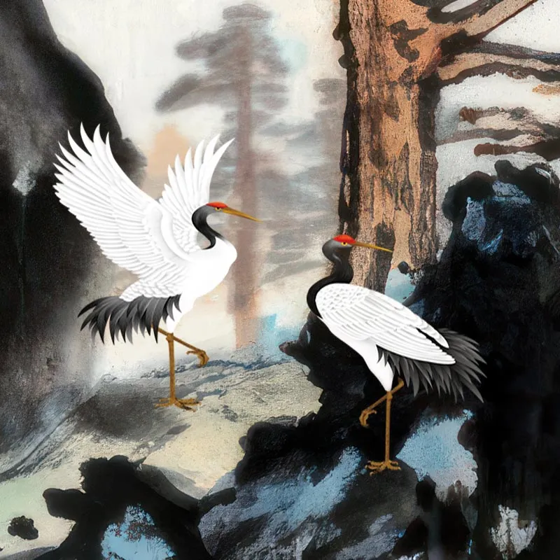 Lý do: Cây tùng tượng trưng cho sự kiên cường và trường thọ, chim hạc tượng trưng cho sự minh mẫn và thăng tiến. Việc treo bức tranh này trong phòng làm việc sẽ mang lại cảm giác bình tĩnh, tập trung và lời chúc cho sự nghiệp bền vững.