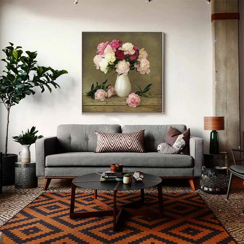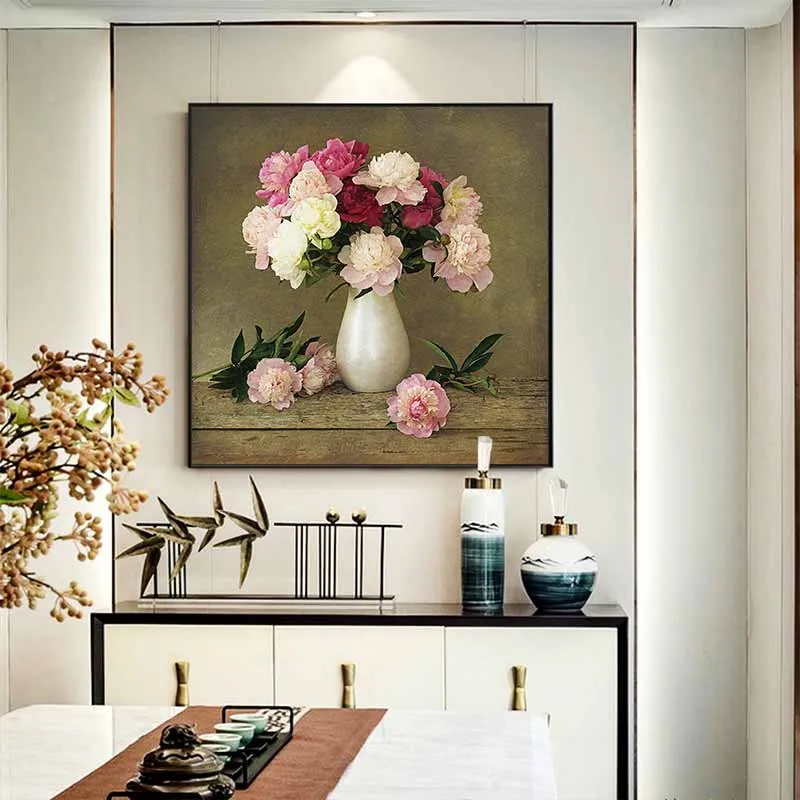Tranh tĩnh vật bình hoa mẫu đơn