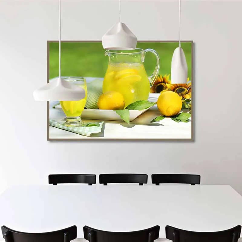 Tranh tĩnh vật bình nước chanh và 2 quả chanh