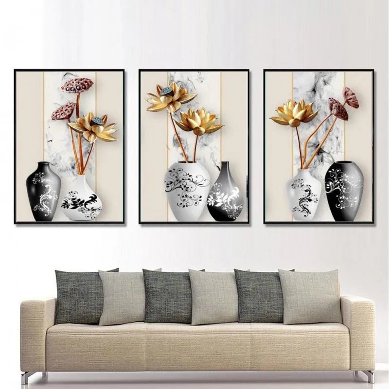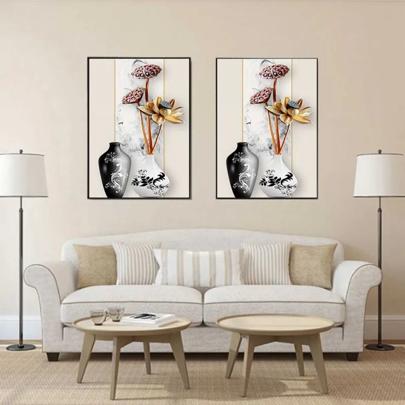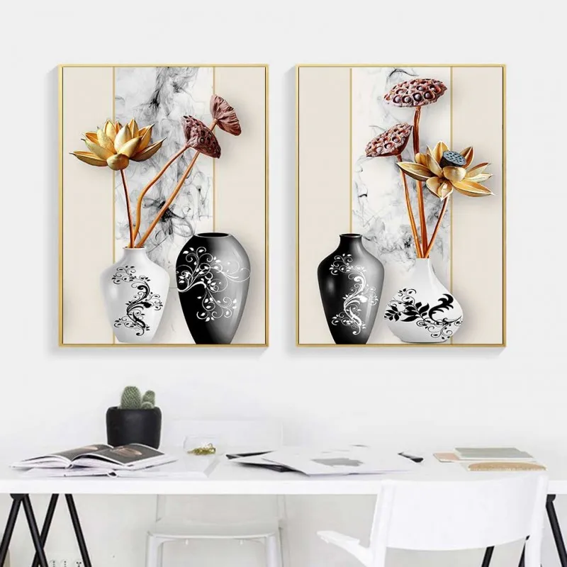 Tranh tĩnh vật bình hoa, hoa sen và nhụy sen bằng gỗ mang ý nghĩa tôn giáo. Trong Phật giáo, hoa sen thể hiện sự tôn nghiêm, thanh tinh, sự thanh lọc không bị ô nhiễm bởi môi trường xung quanh. Trong phong thủy thì hoa sen đem lại sự may mắn và an toàn cho gia chủ.