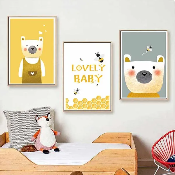 Tranh gấu và ong, kết hợp chữ “Lovely baby”