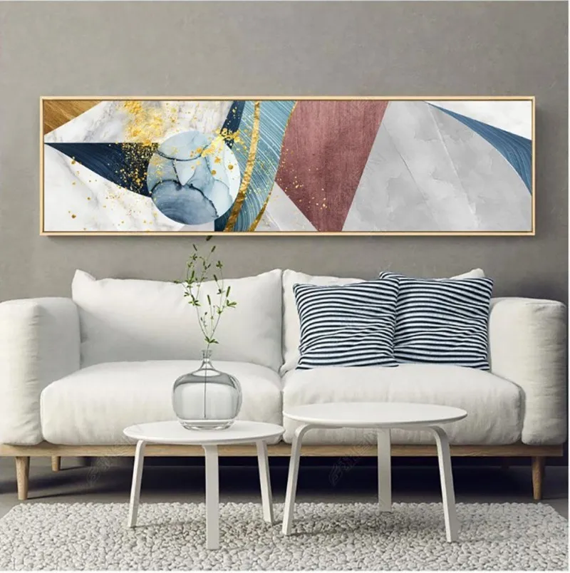 Tranh trừu tượng các khối hình học sắc vàng, xanh nước biển và nâu