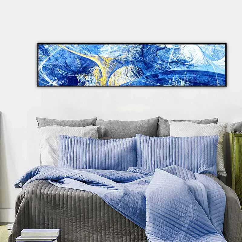 Tranh trừu tượng các vệt sáng xanh nước biển và vàng