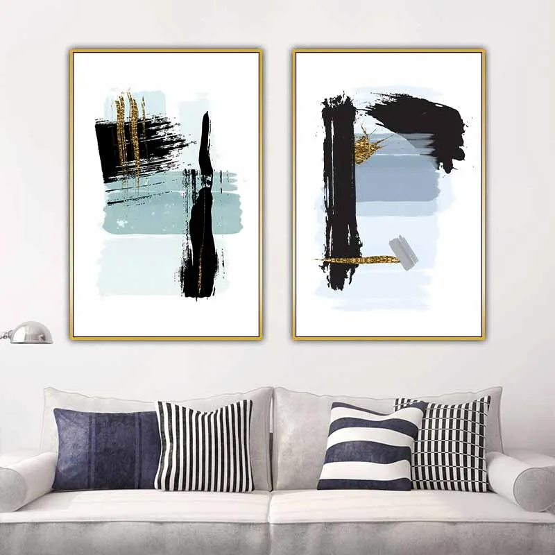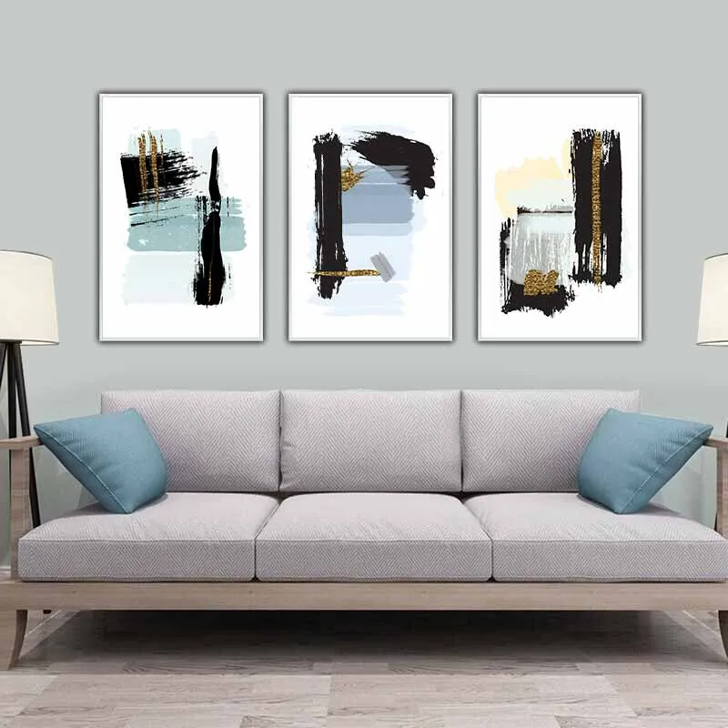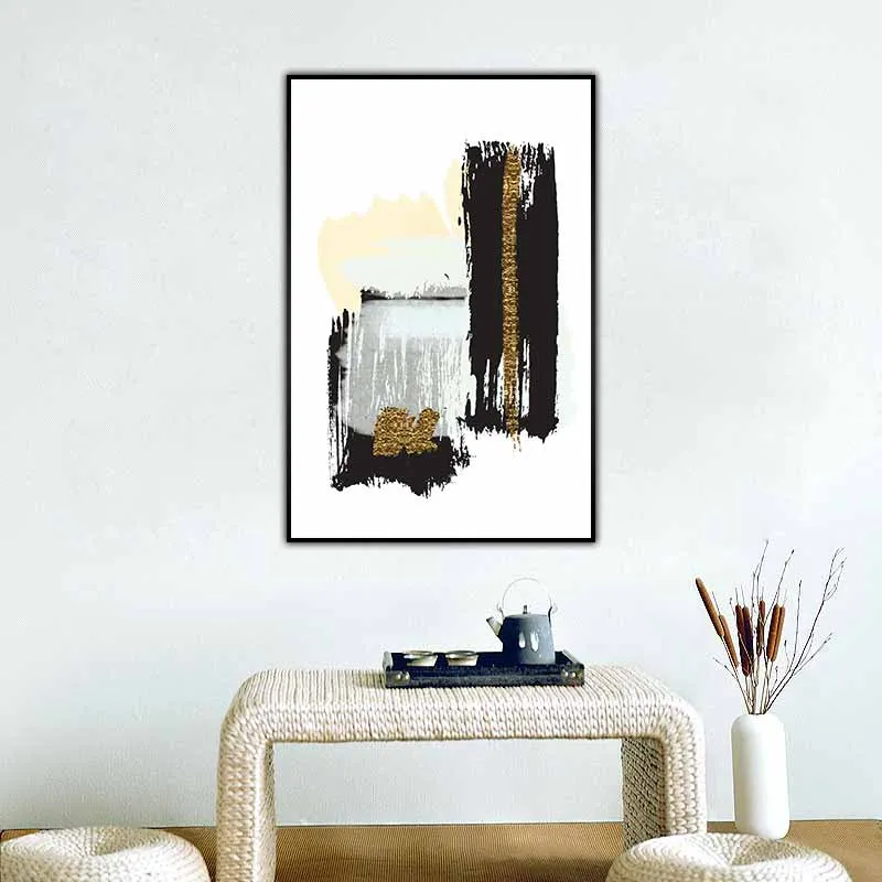 Tranh trừu tượng các vệt sơn đen, xanh và vàng