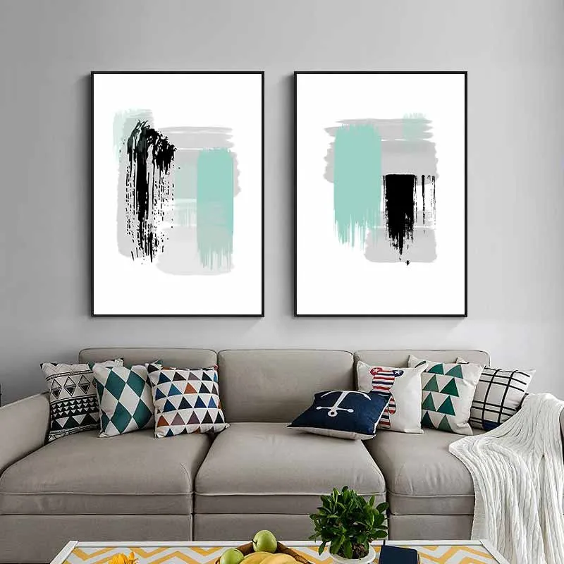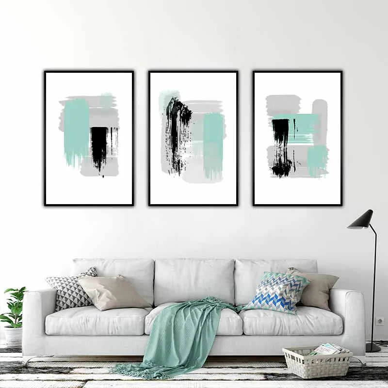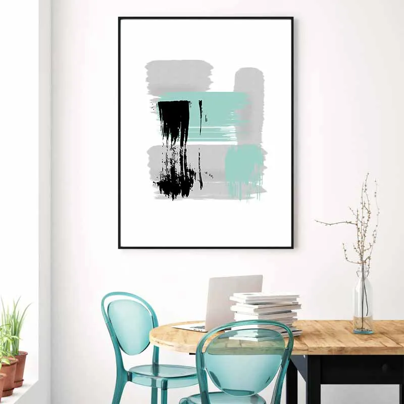 Tranh trừu tượng các vệt sơn xanh, xám và đen