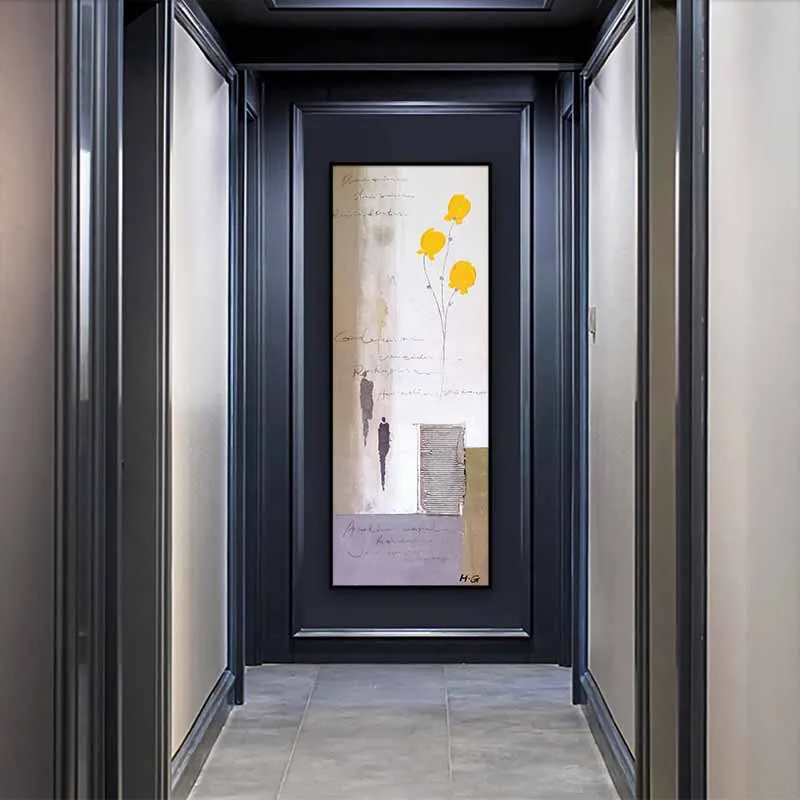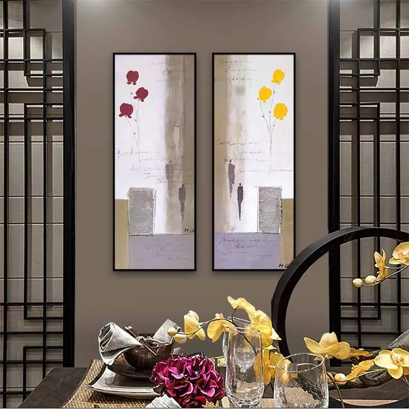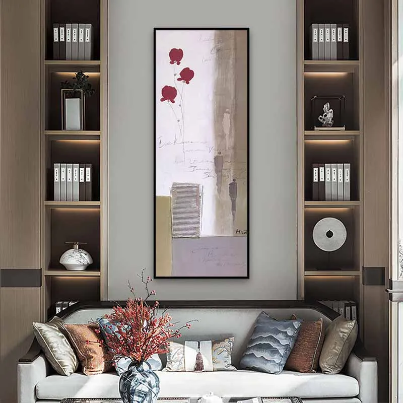 Tranh trừu tượng cành hoa sắc vàng và đỏ