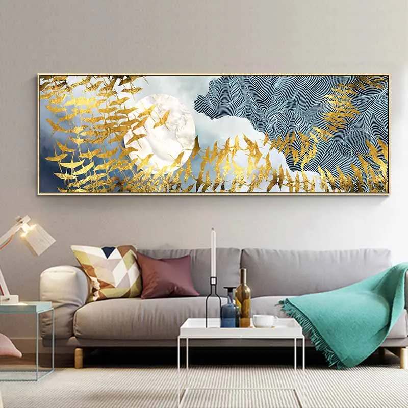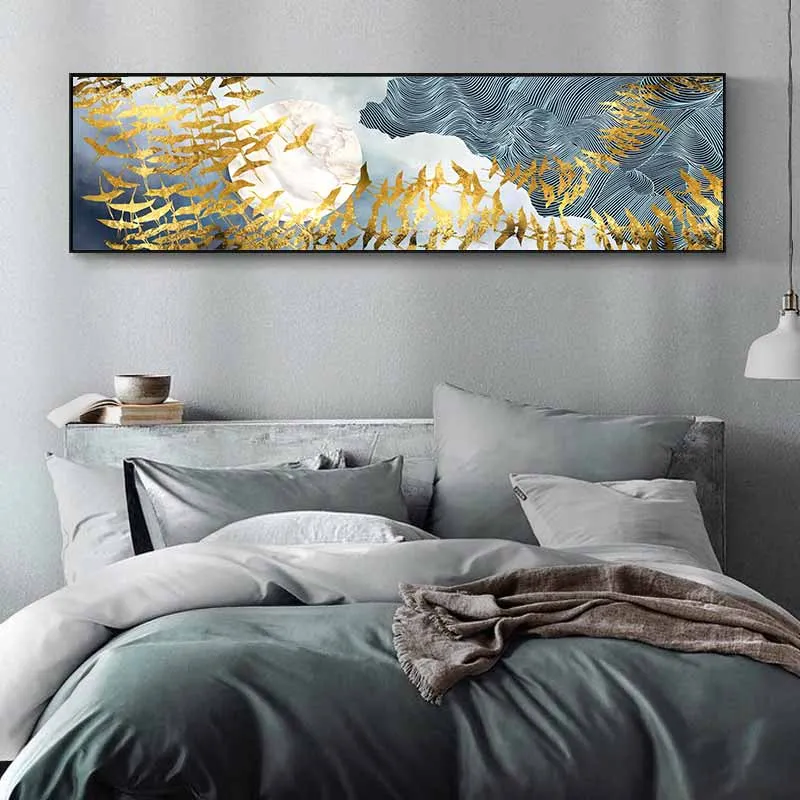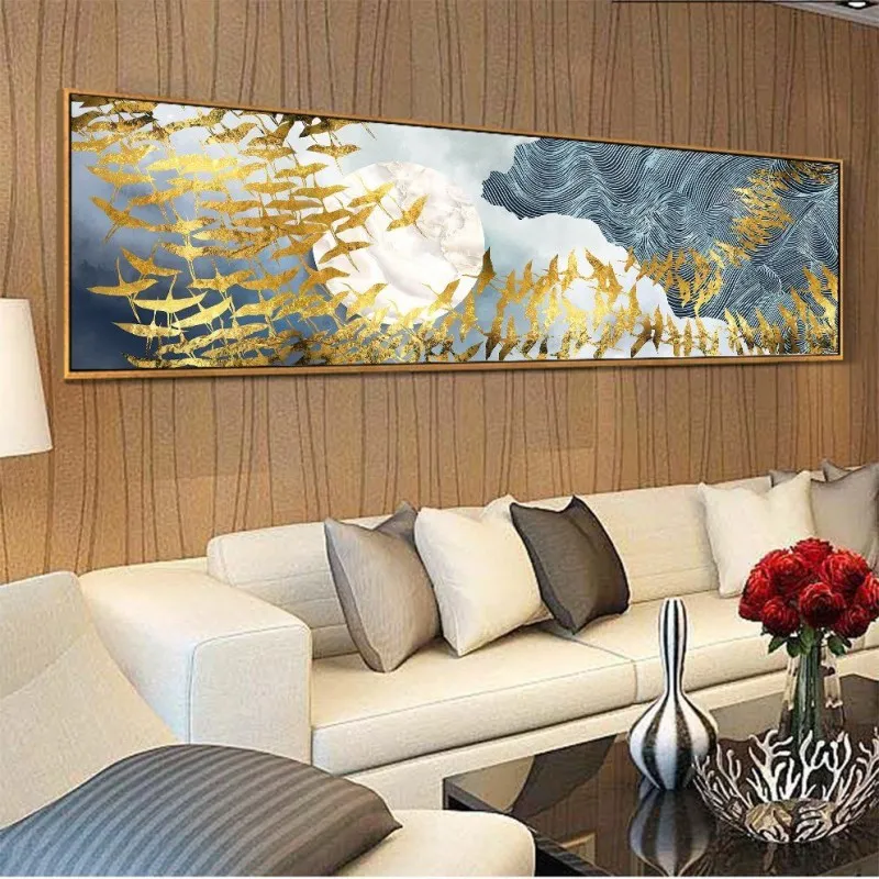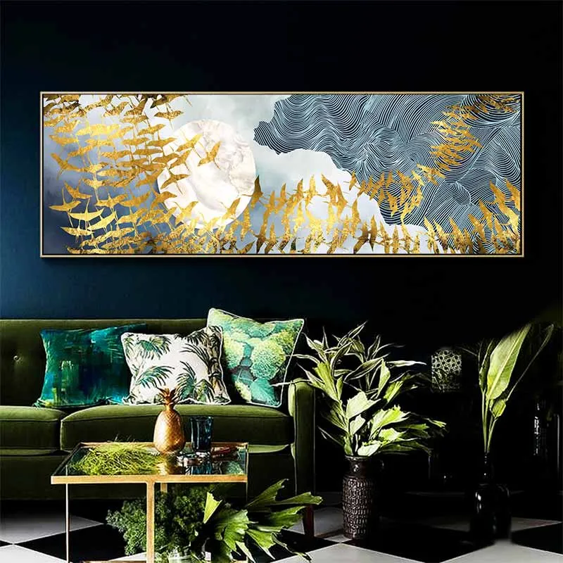 Tranh trừu tượng đàn cò, hạc bay trên bầu trời ngang qua mặt trăng. Chim Hạc là biểu tượng của sự cao quý mang lại may mắn, êm ấm. Theo sách cổ ghi lại rất nhiều điều liên quan tới đức tính của hạc, nhìn một cách tổng quát, hạc giống như một người quân tử, không dâm, không dục, trong sạch thuần khiết, tiếng kêu thánh thót, sánh với nhân tài.
