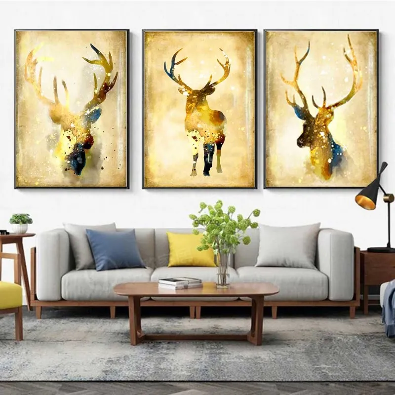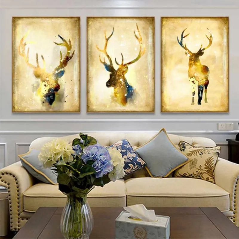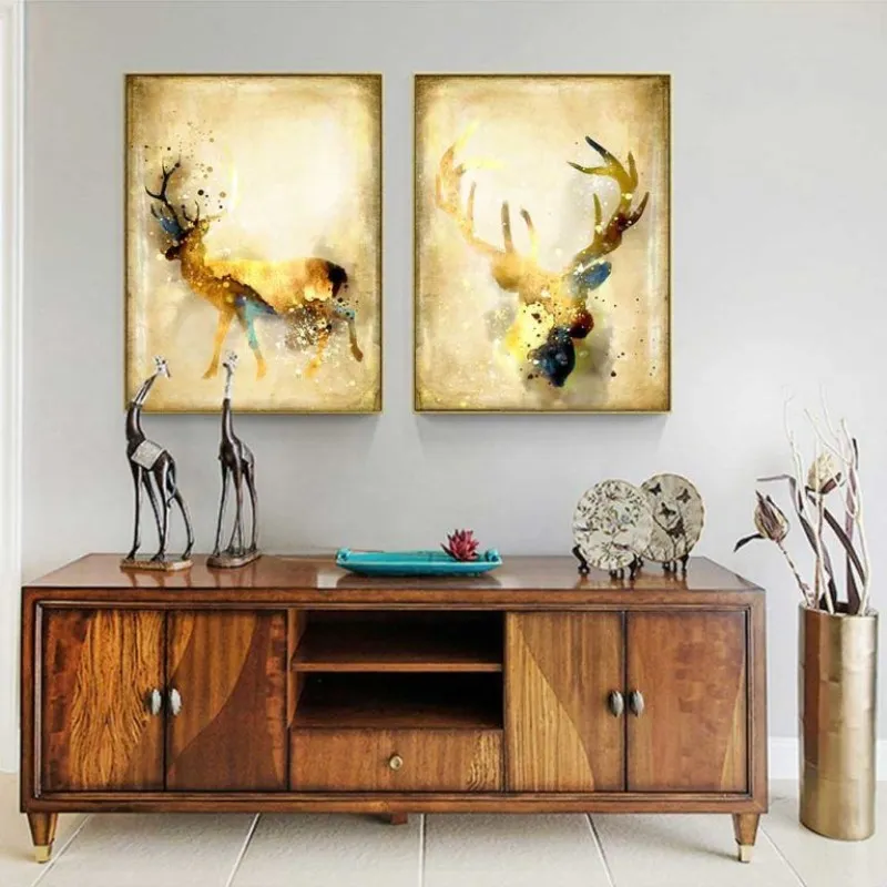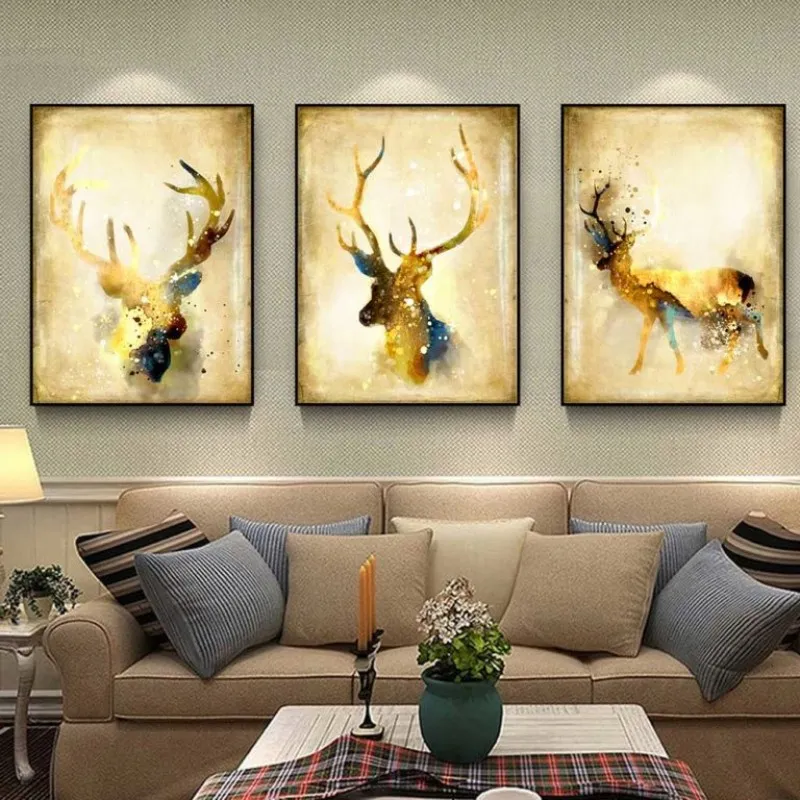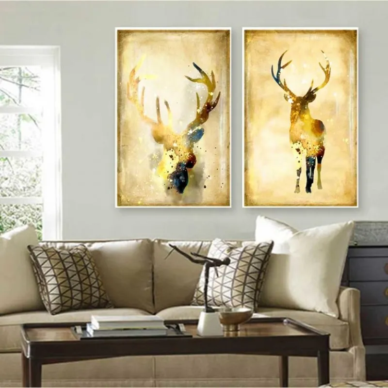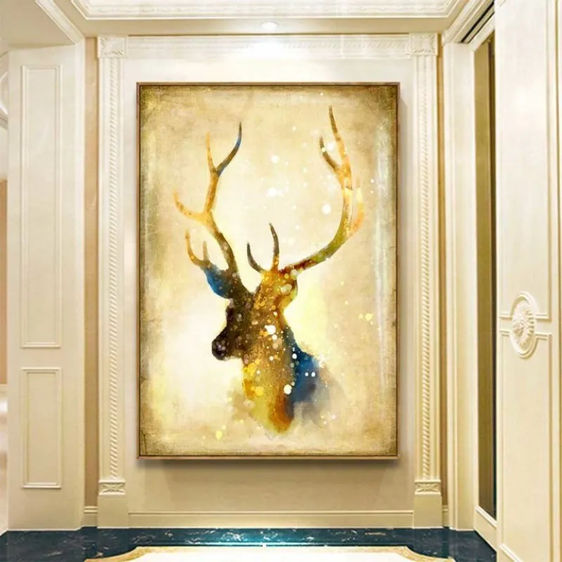 Tranh trừu tượng đầu hươu nai theo phong cách màu nước