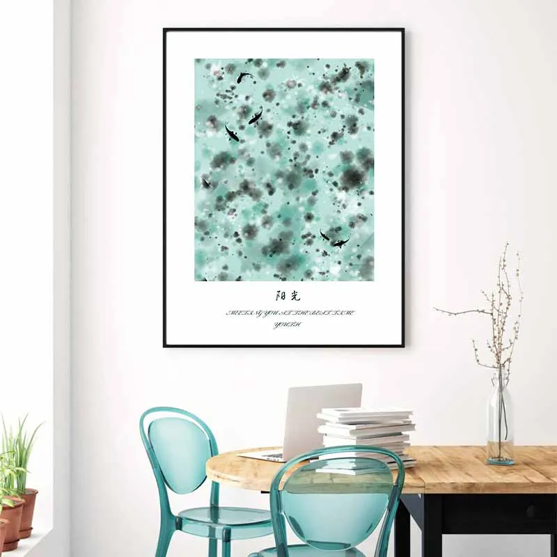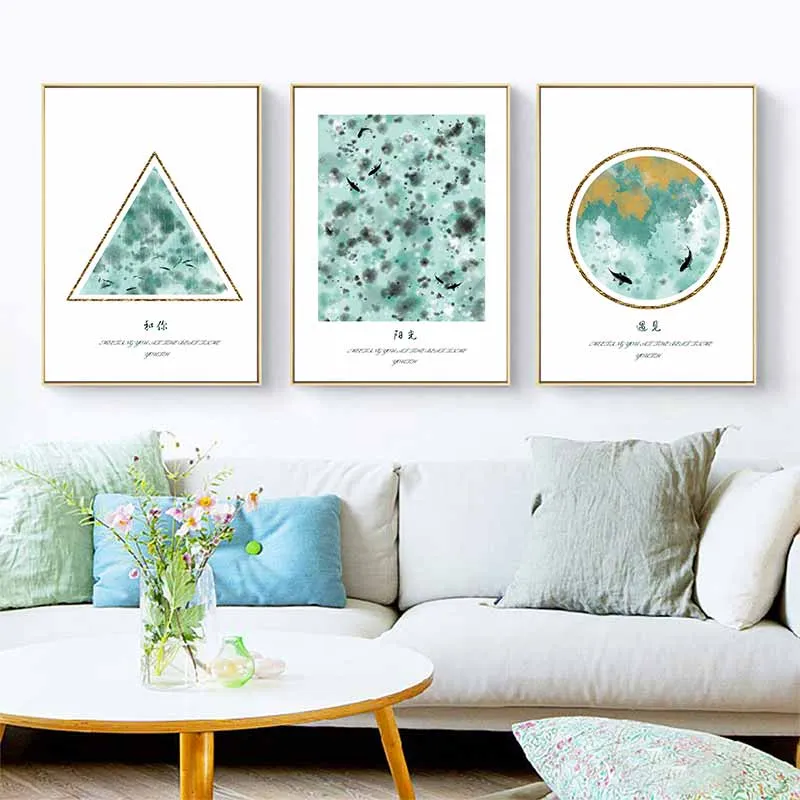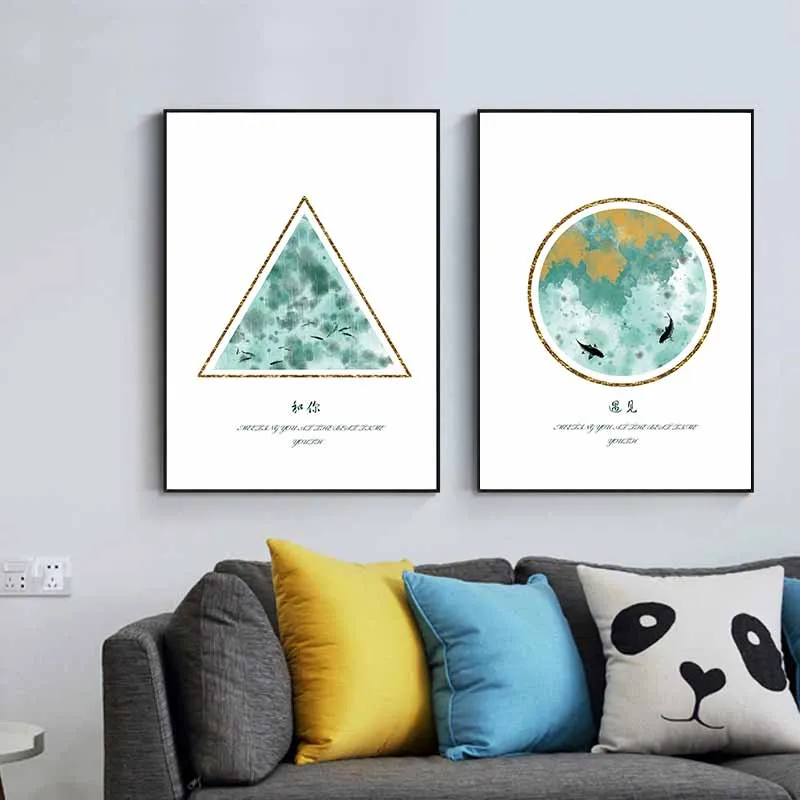 tranh trừu tượng hình chữ nhật, hình tròn và hình tam giác và đàn cá chép