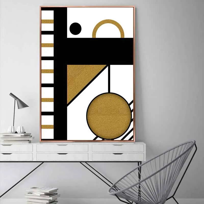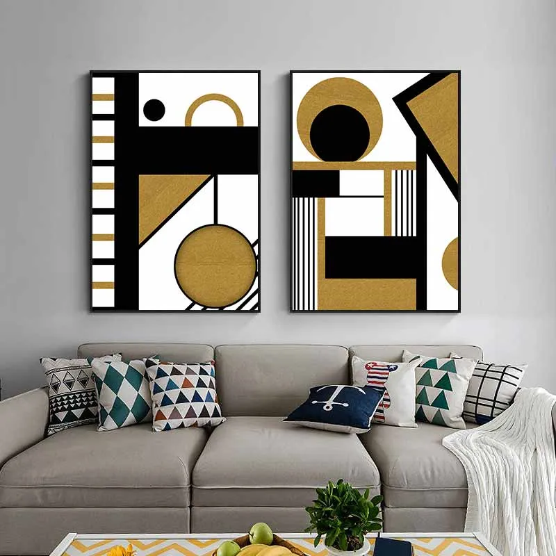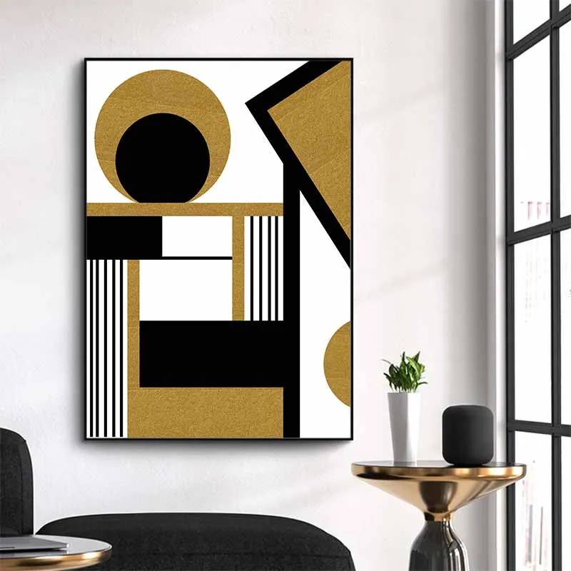 Tranh trừu tượng khối hình học với sắc vàng và đen