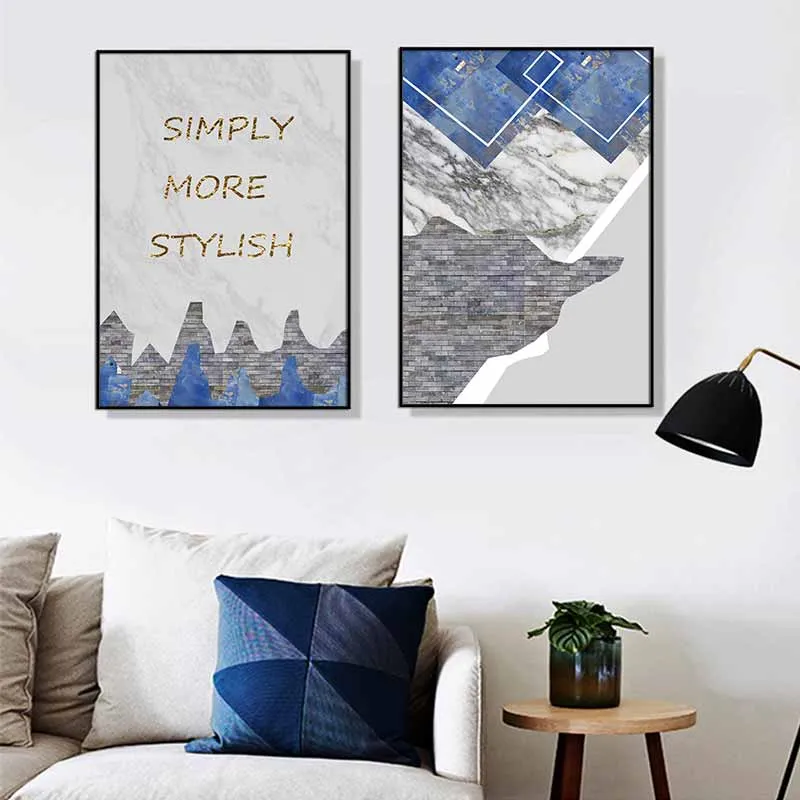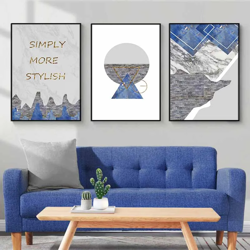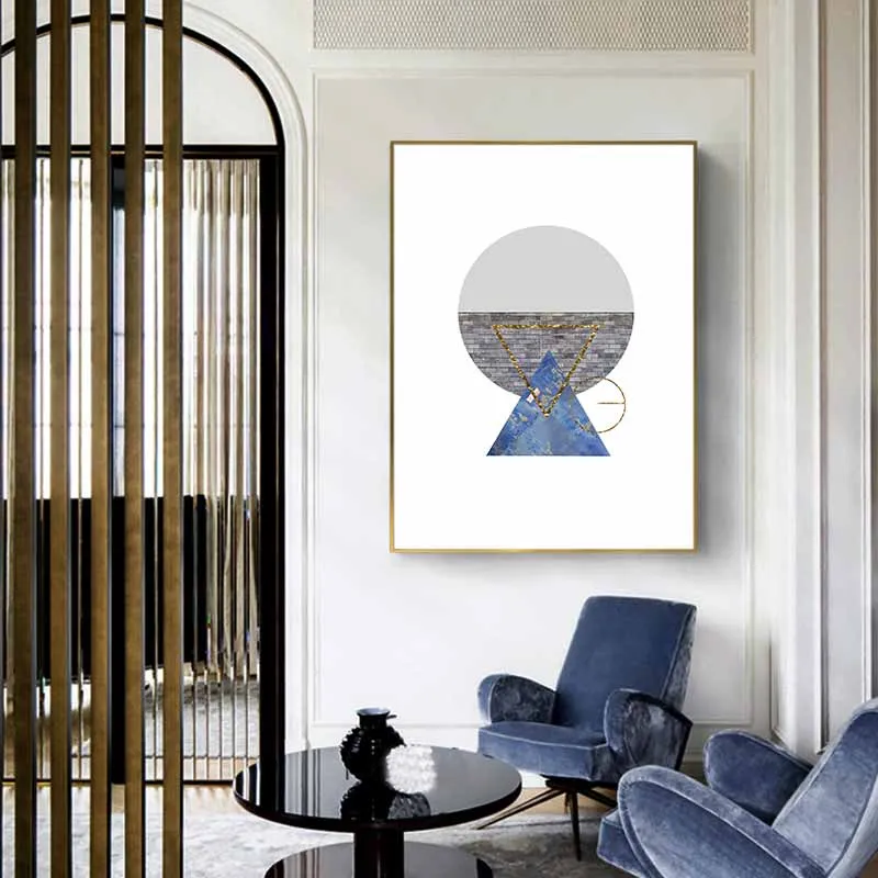 Tranh trừu tượng khối hình học với sắc xám và xanh nước biển
