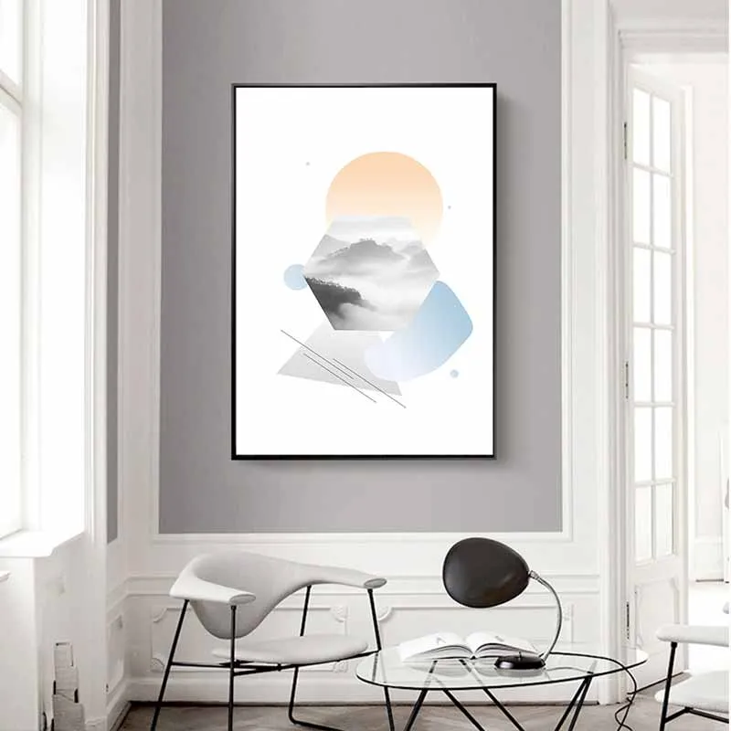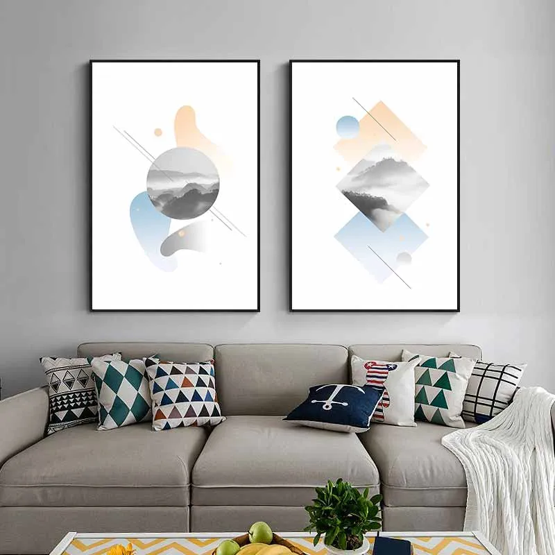 Tranh trừu tượng khối hình học với tone màu Pastel nhẹ nhàng