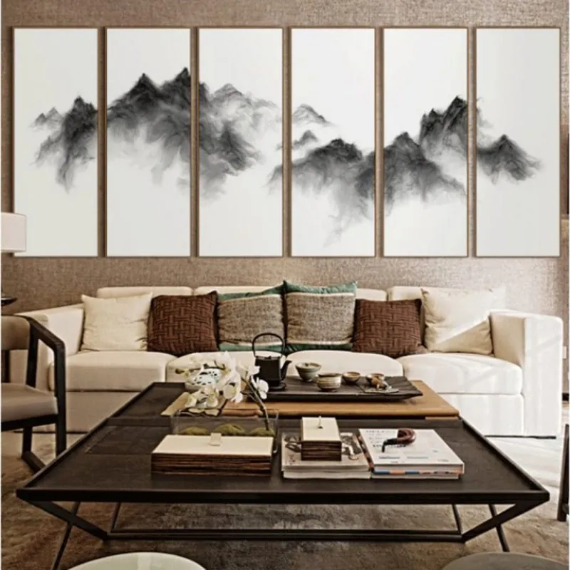 Tranh trừu tượng mây phủ ngọn núi