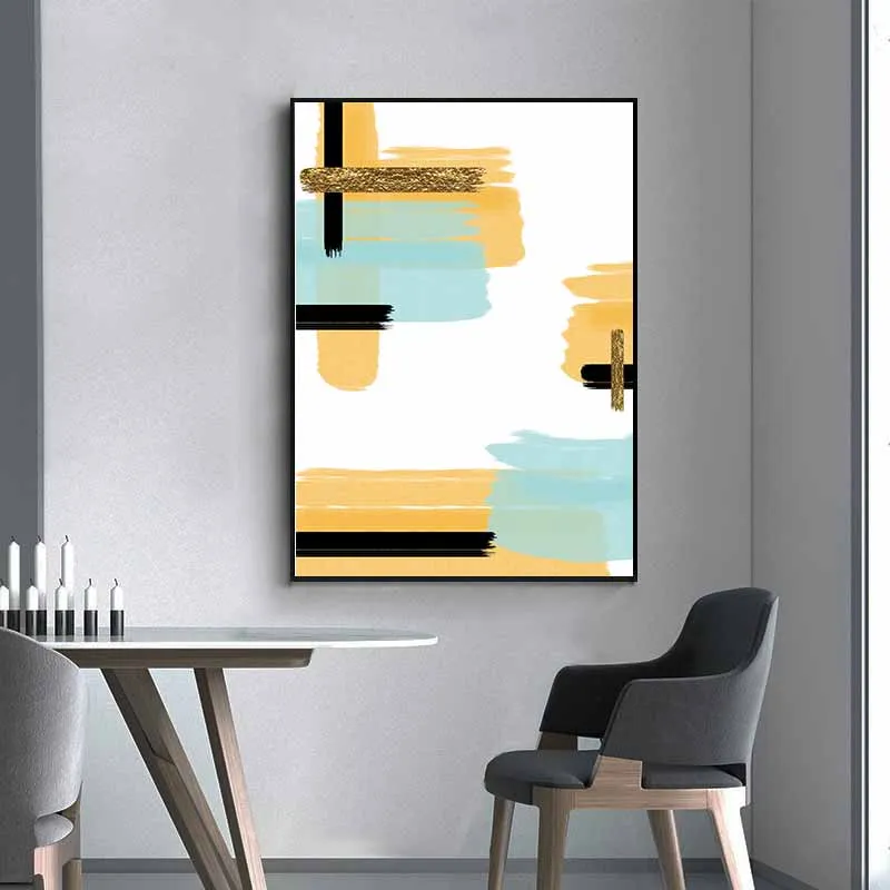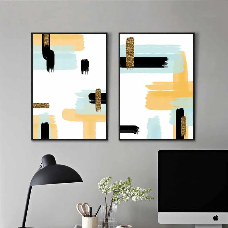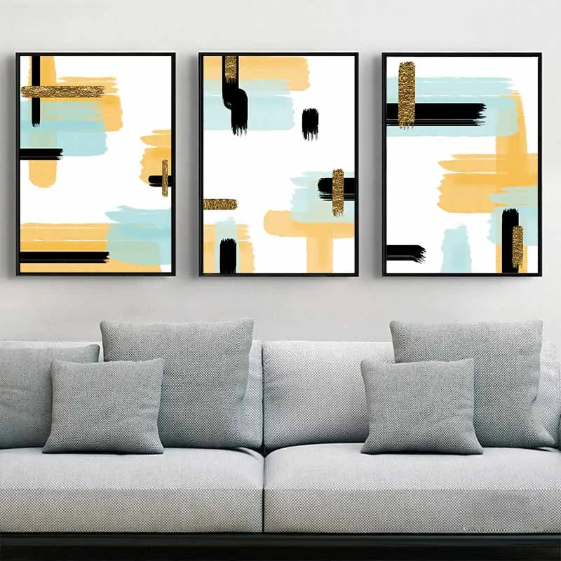 Tranh trừu tượng những vệt mực đen vàng và xanh