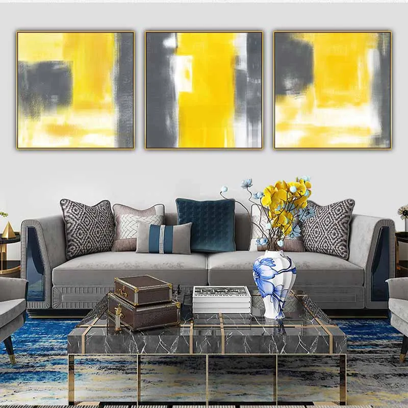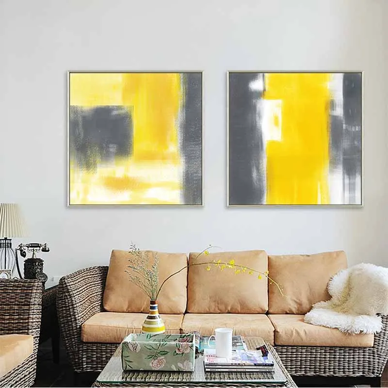 Tranh trừu tượng táo bạo với màu vàng và xám