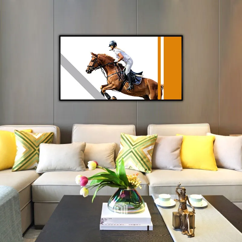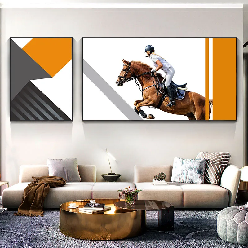 Tranh trừu tượng và cô gái cưỡi ngựa