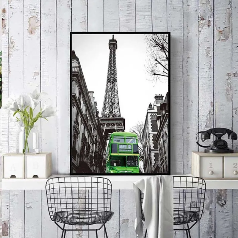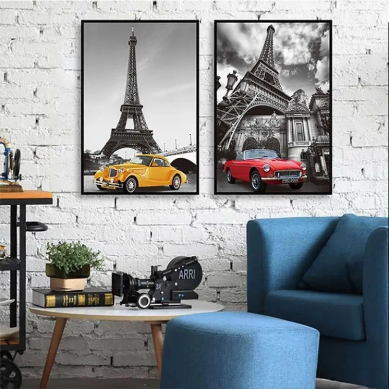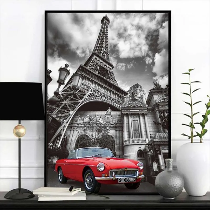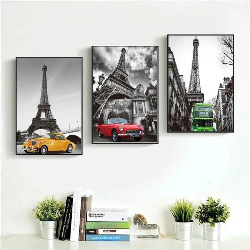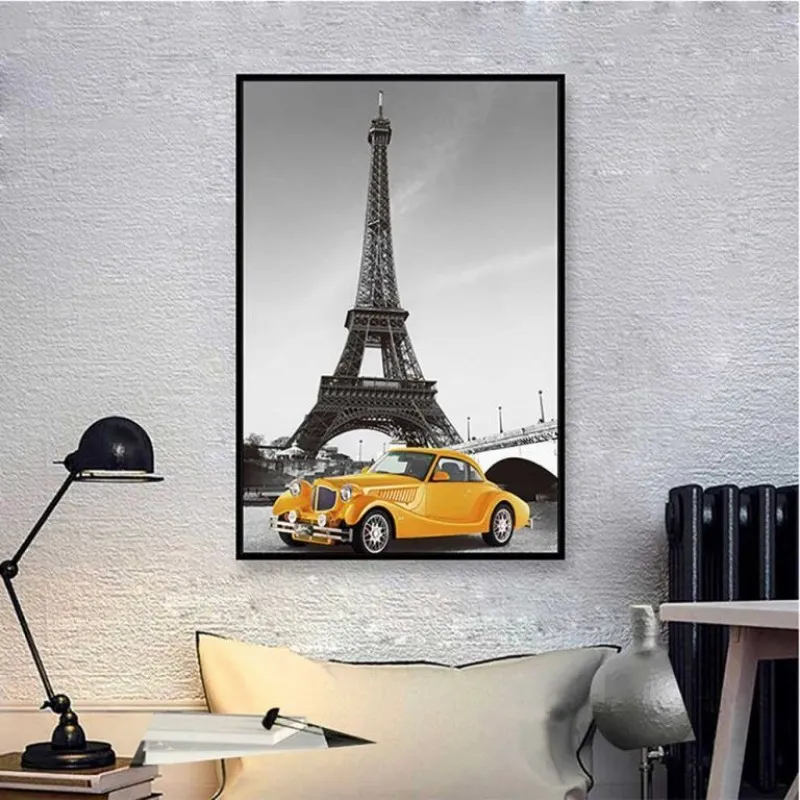 Tranh xe ô tô và tháp Eiffel